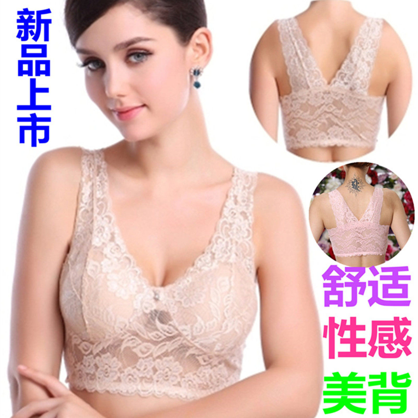 舒适薄模杯款蕾丝性感无痕内衣女士背心式大码无钢圈美背运动文胸