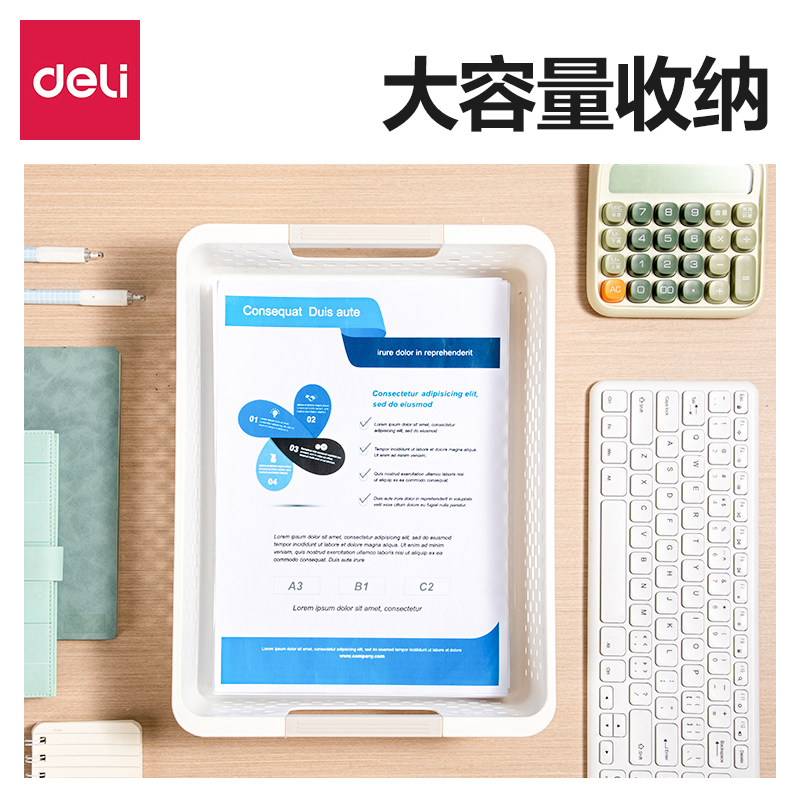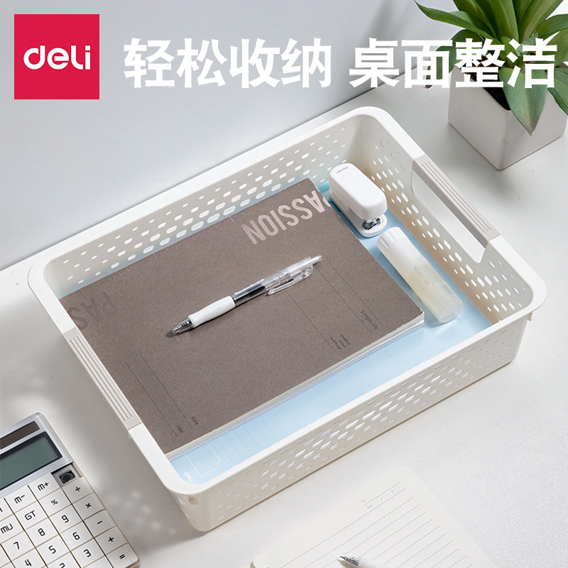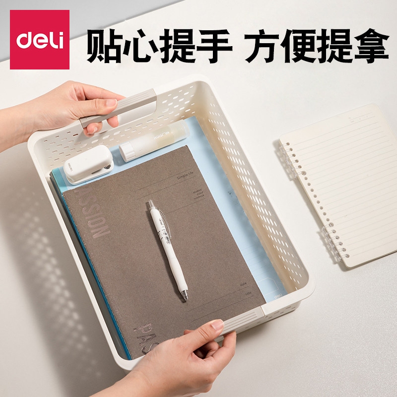 得力办公收纳框桌面A4资料文件框公文篮家用大容量手提整理收纳盒