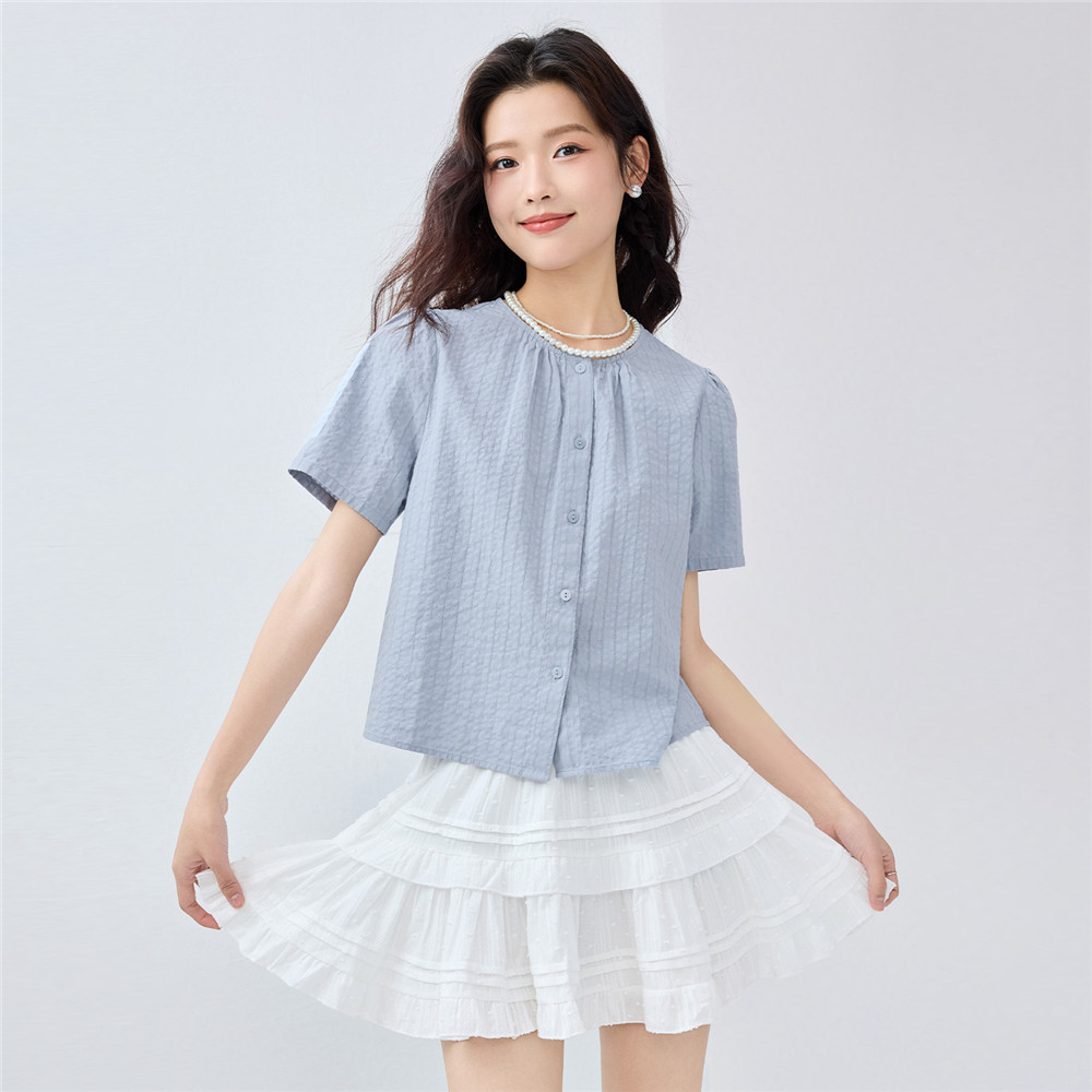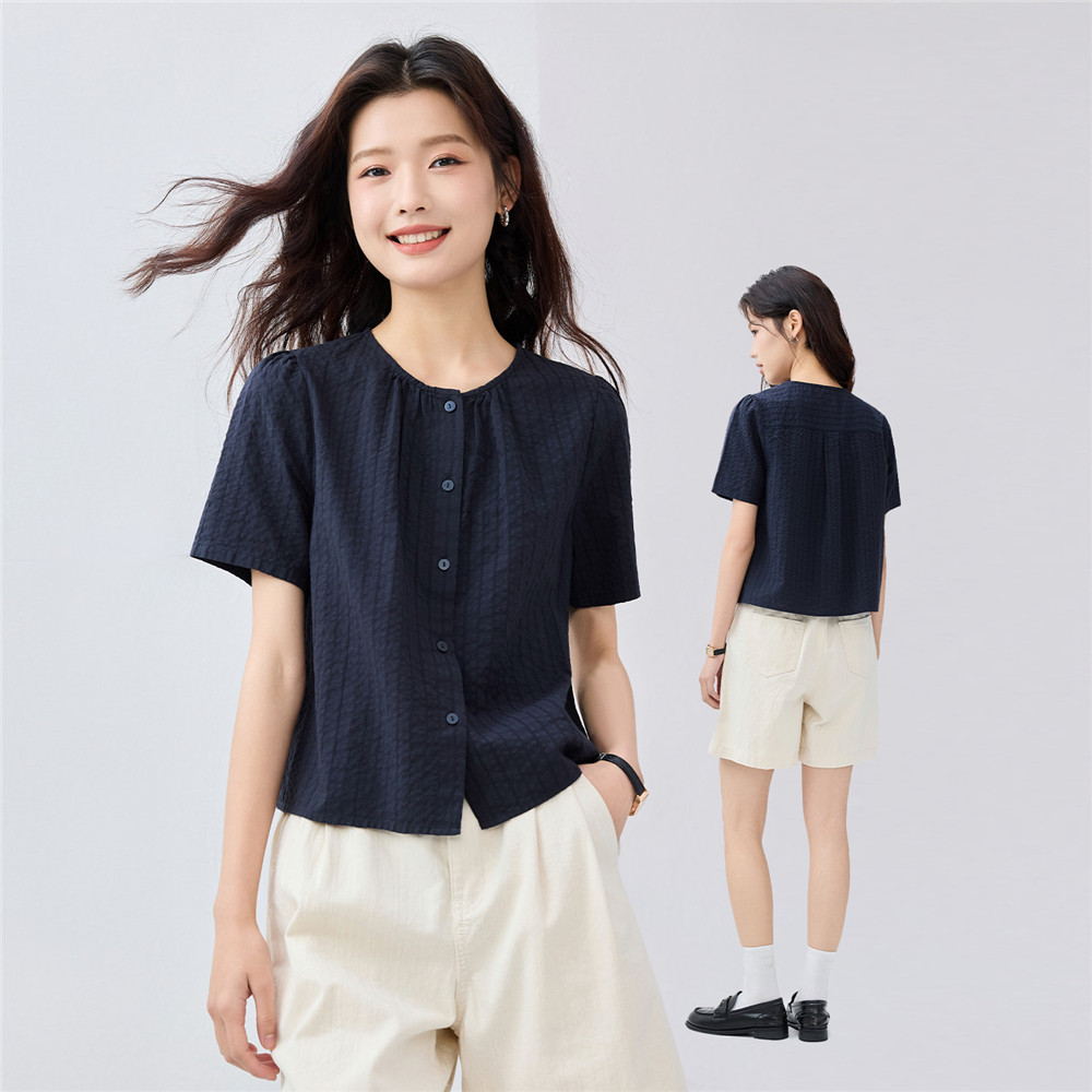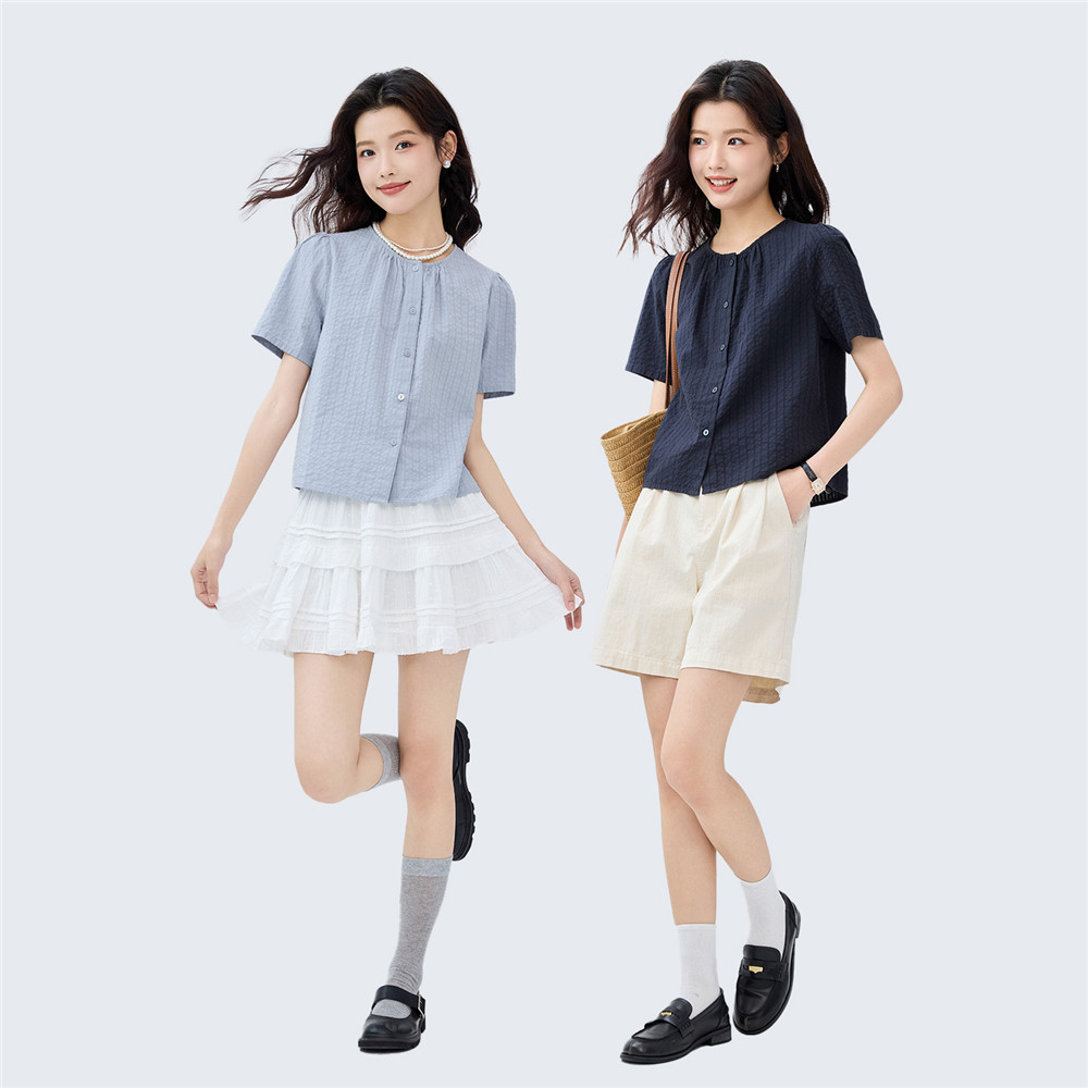 肌理感纯棉透气耐看 圆领衬衫优雅显气质