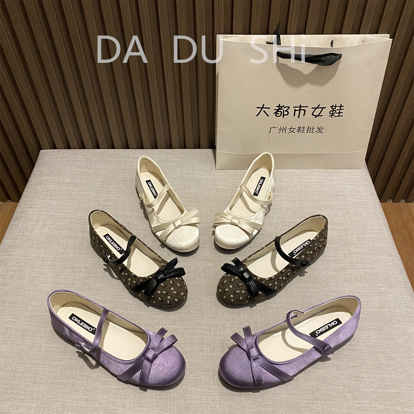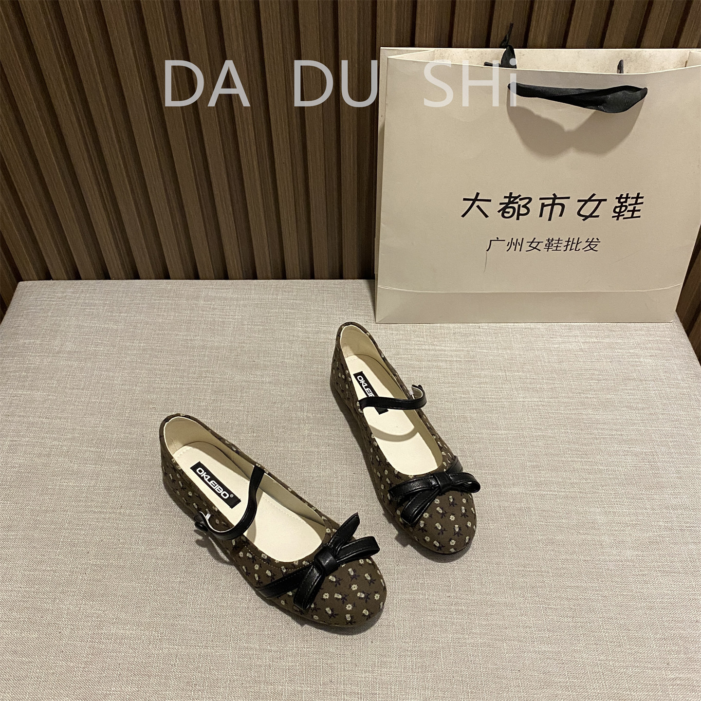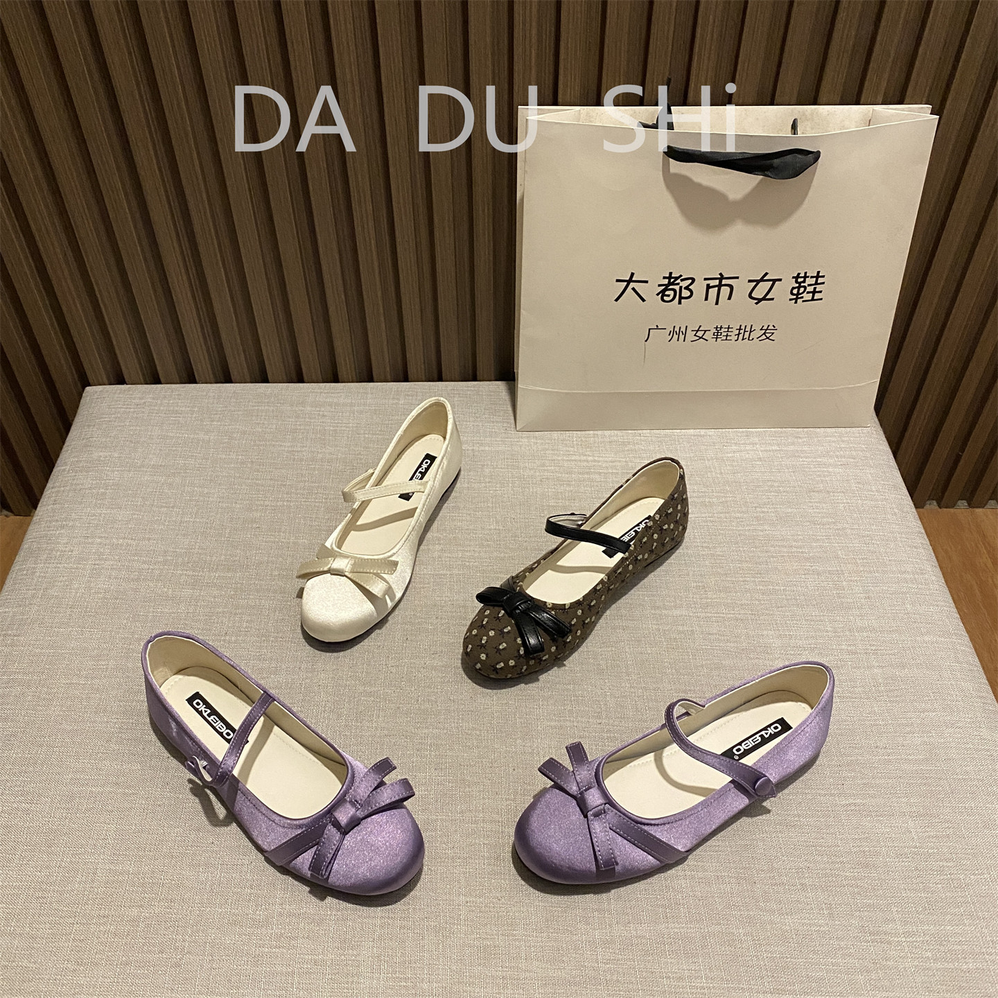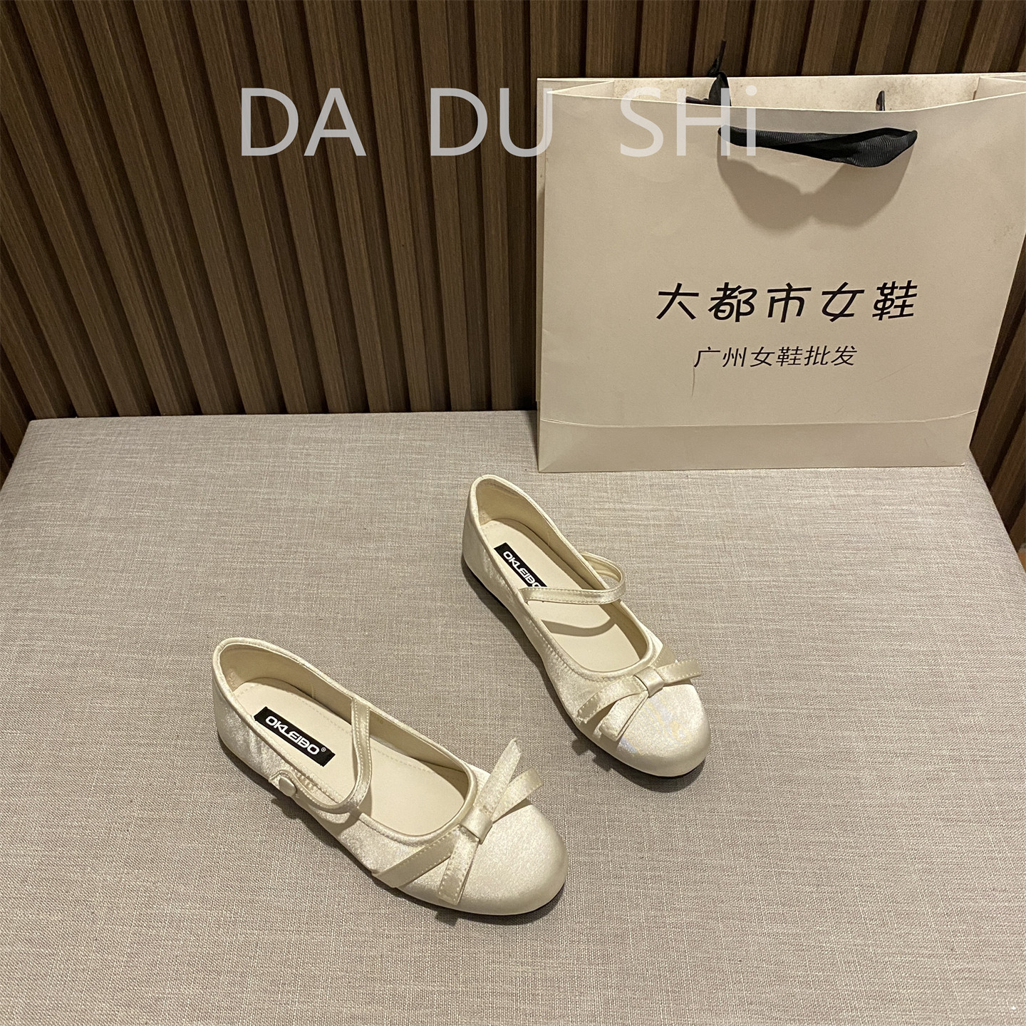 复古风蝴蝶结玛丽珍鞋女平跟浅口单鞋软底百搭圆头舒适芭蕾舞鞋