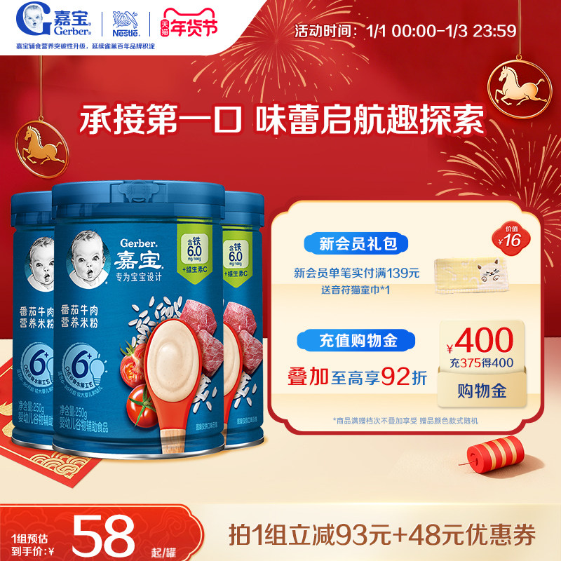 Gerber嘉宝官方旗舰店高铁谷物米粉婴儿宝宝营养辅食米糊250g