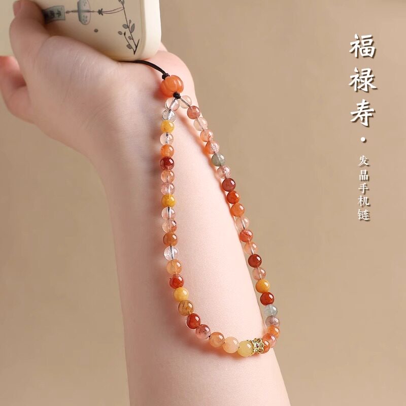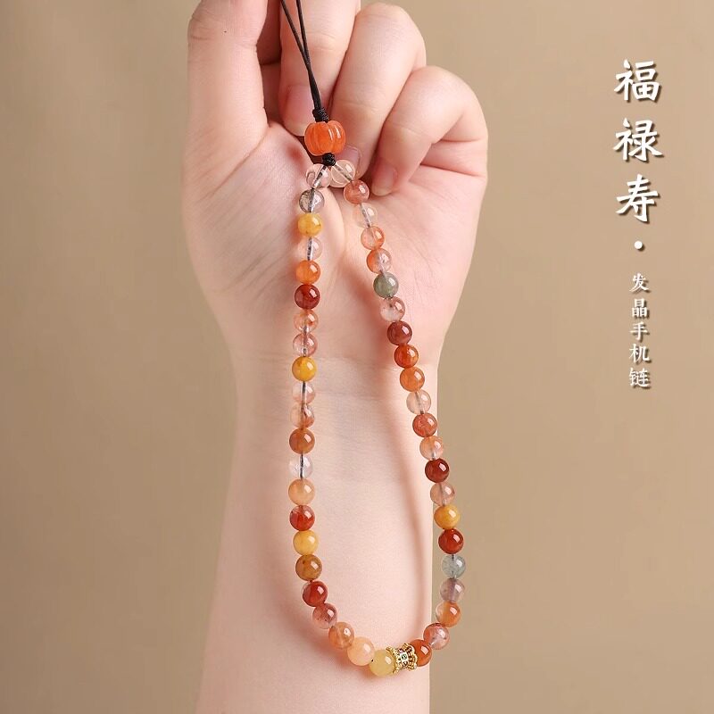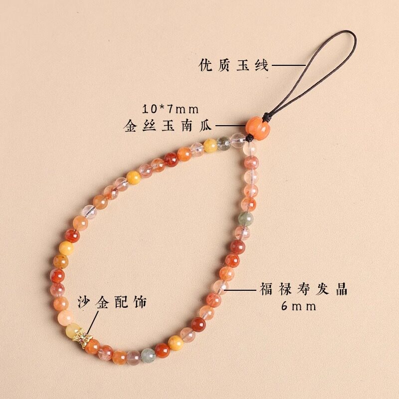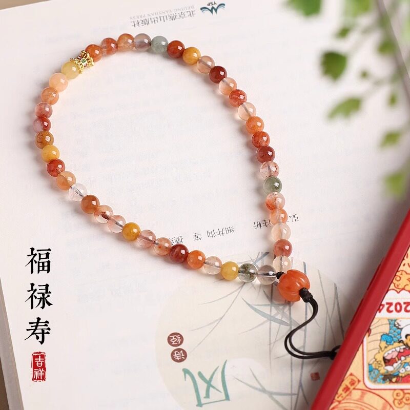普陀山手机挂件串珠多宝水晶招财手机链绳挂手腕防丢吉祥物挂饰女