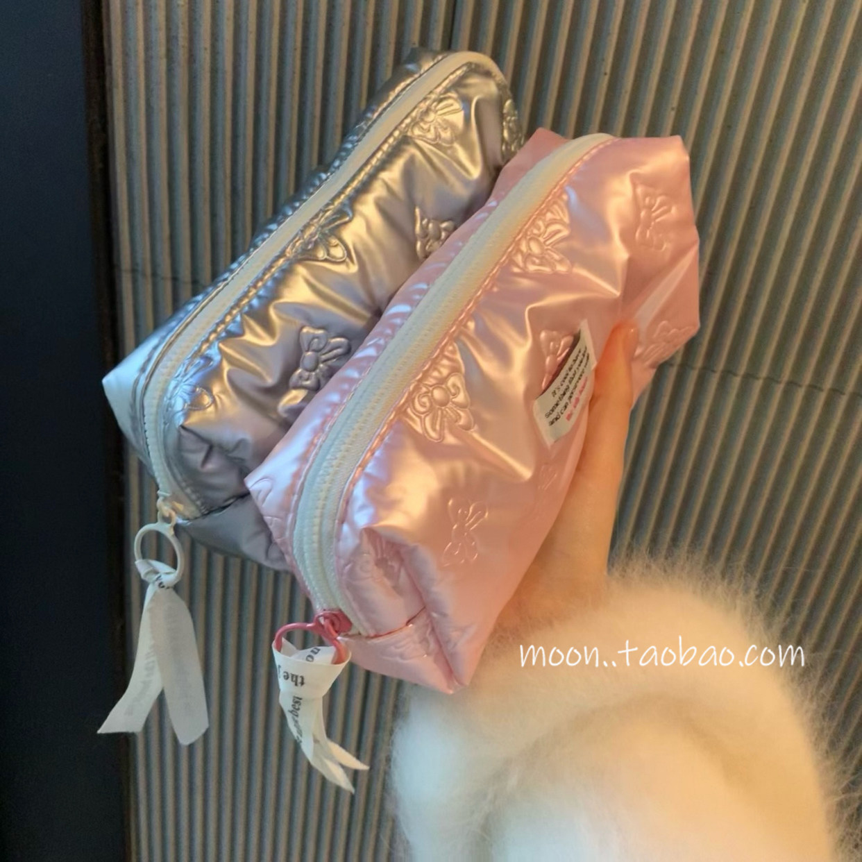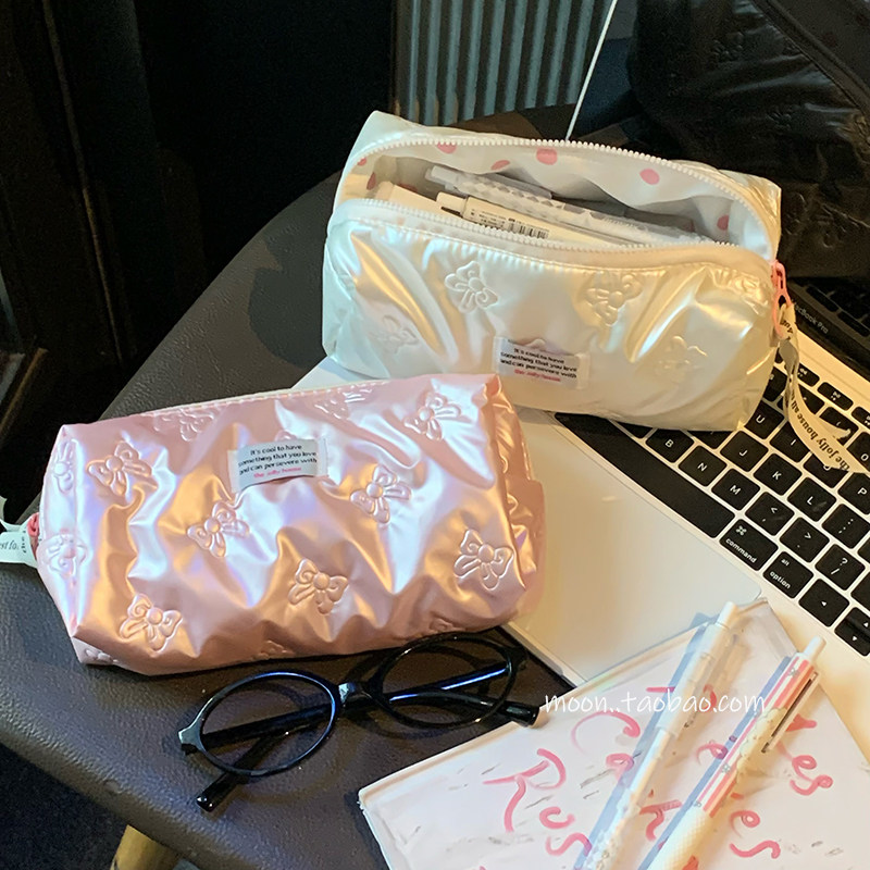韩国pu粉色蝴蝶结笔袋高颜值女生新款收纳包大容量铅笔盒学生文具