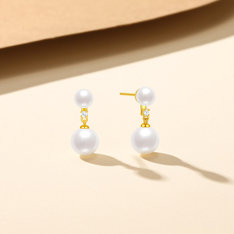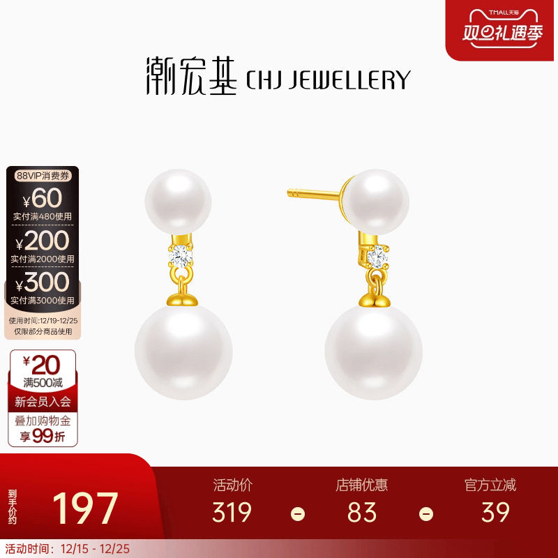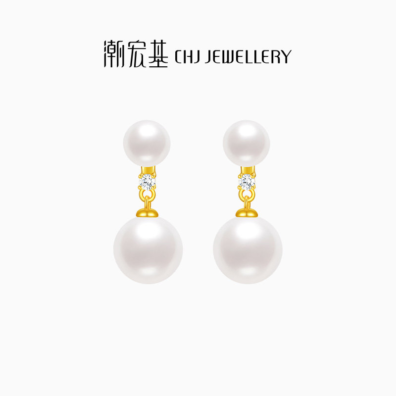 潮宏基至简s925银耳饰仿珍珠银饰耳钉礼物时尚职场通勤送女友ins
