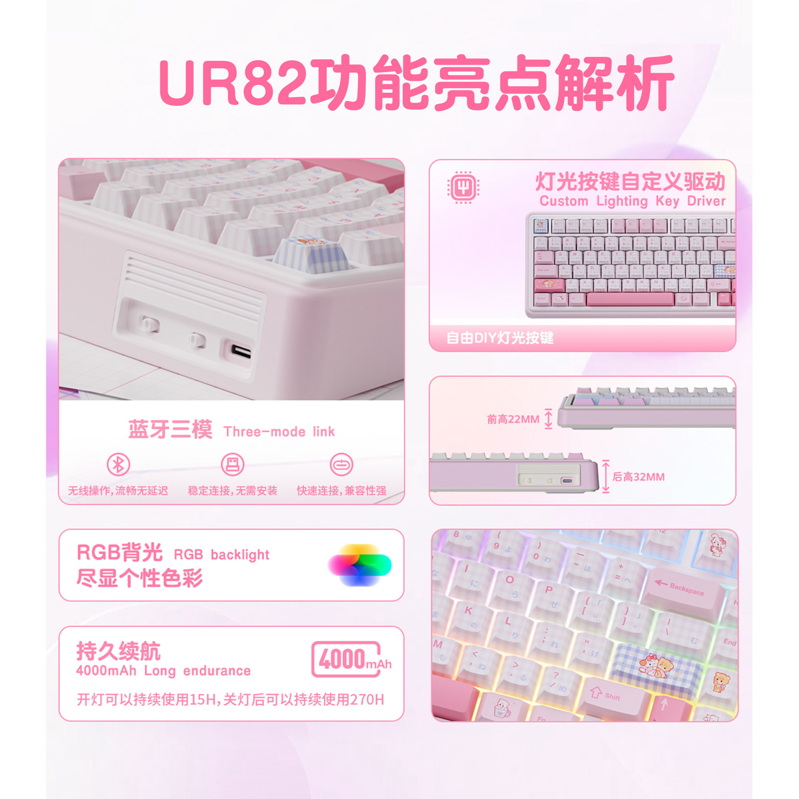 UR82三模机械键盘RGB驱动改键客制化套件Hifi软弹Gasket5脚热插拔