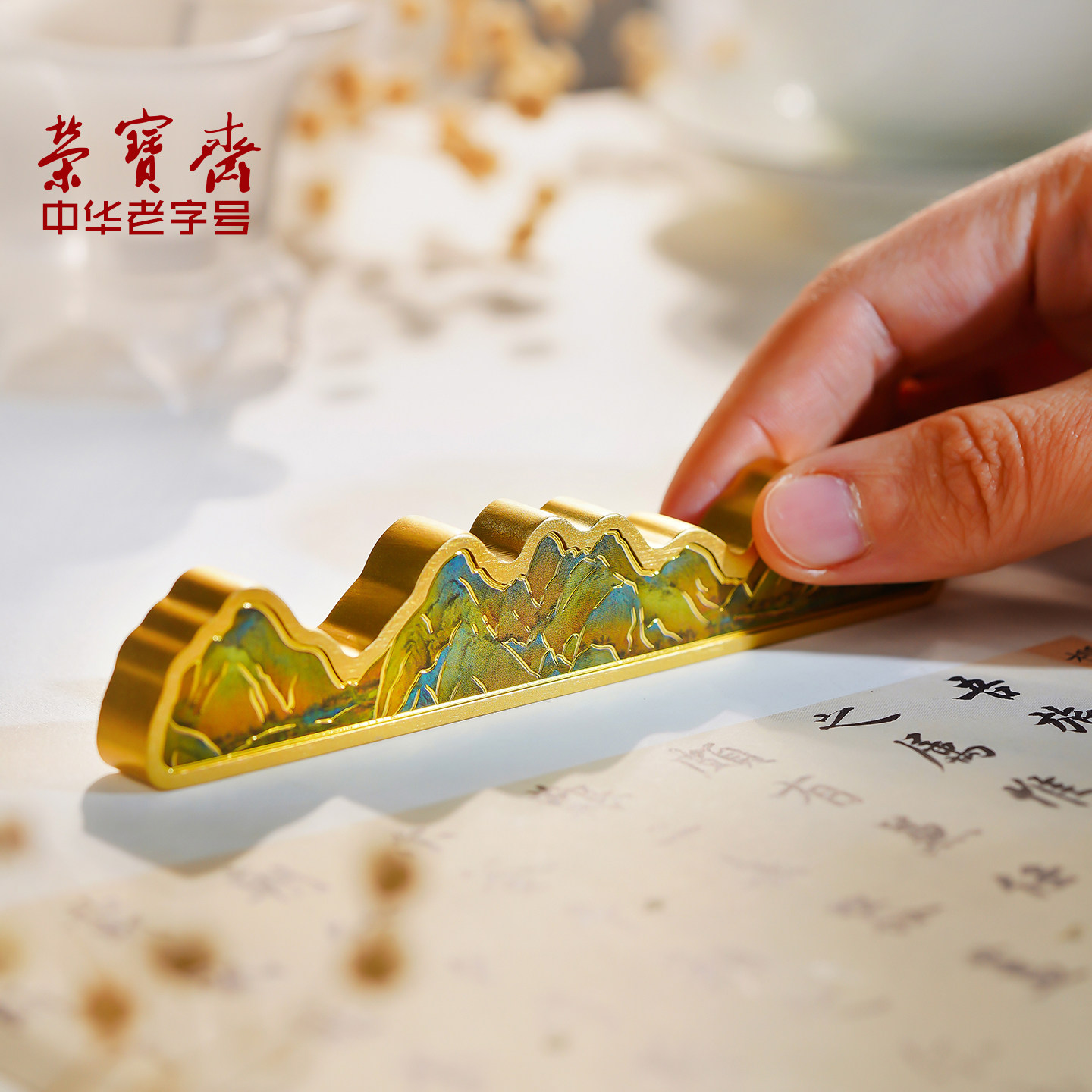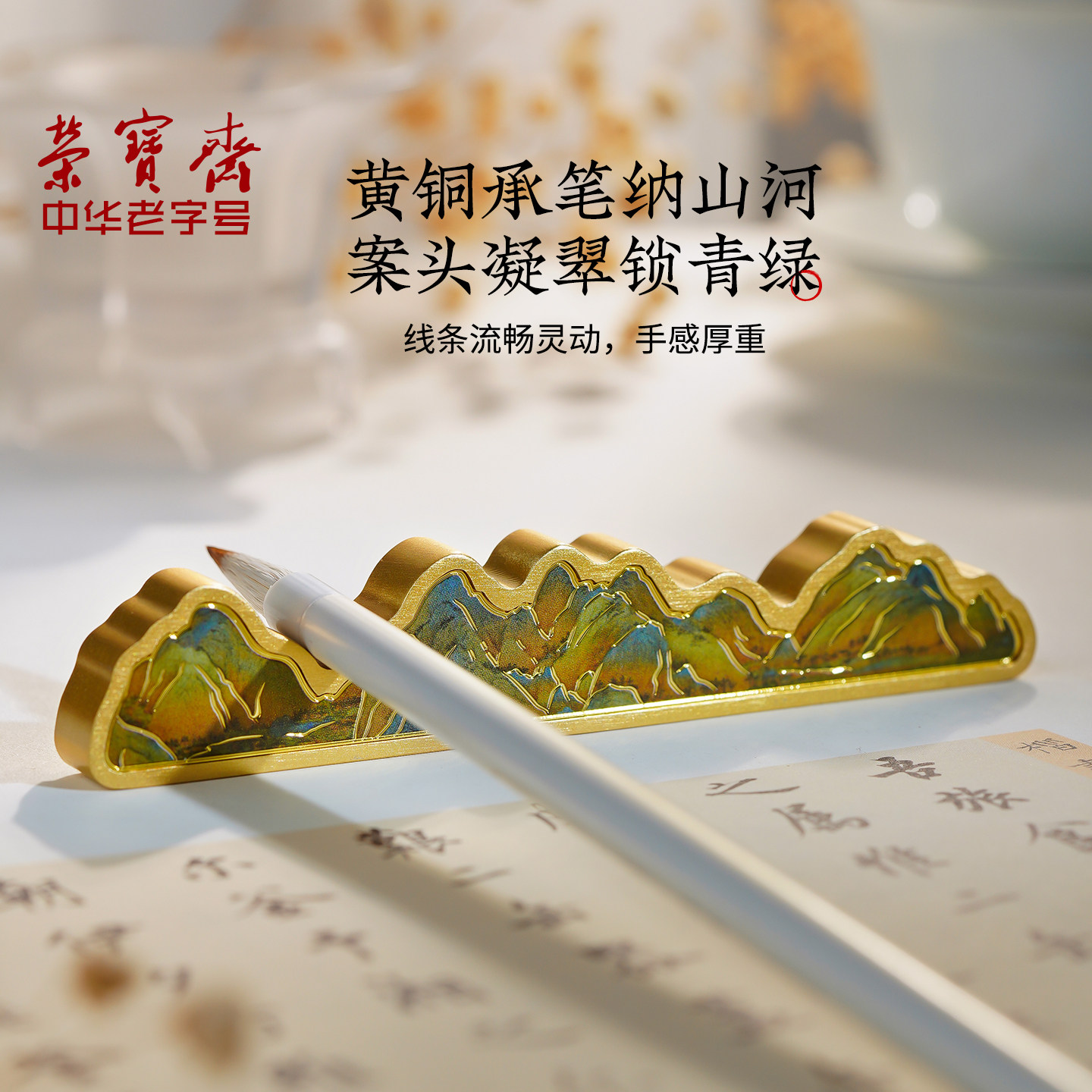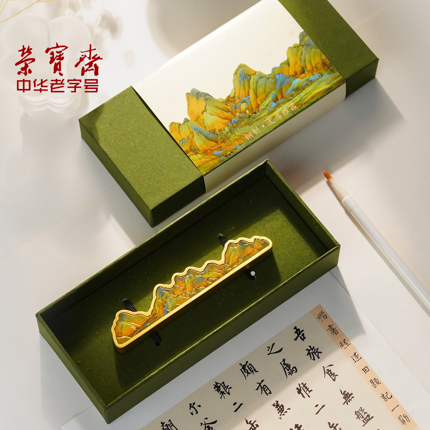 荣宝斋镇纸笔搁黄铜实心镇尺新中式国画千里江山镇尺笔搁文房雅器多功能创意铜镇纸压书条文房四宝书房摆件