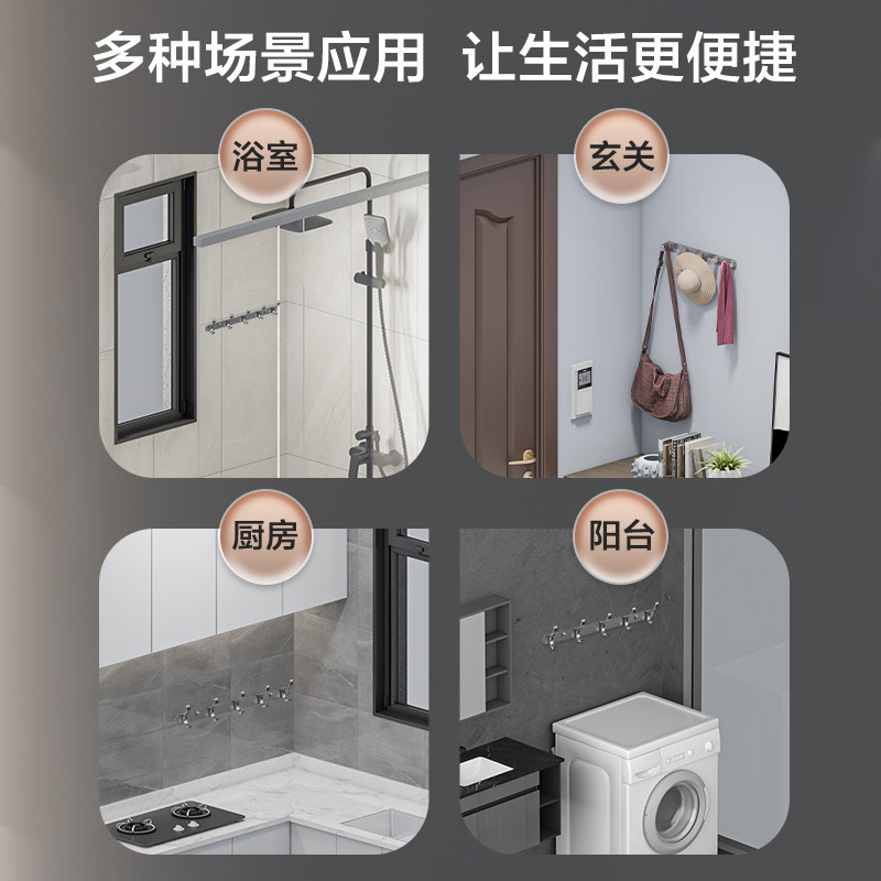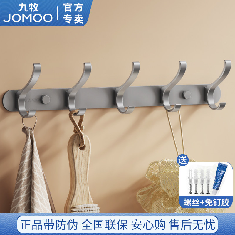 九牧枪灰挂钩免打孔强力粘胶壁挂贴墙衣钩门浴室挂衣架厨房936905