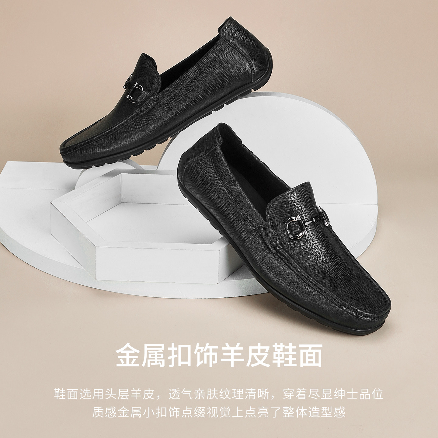 2026春季新款男士一脚蹬懒人鞋真皮透气休闲豆豆鞋乐福鞋男士皮鞋