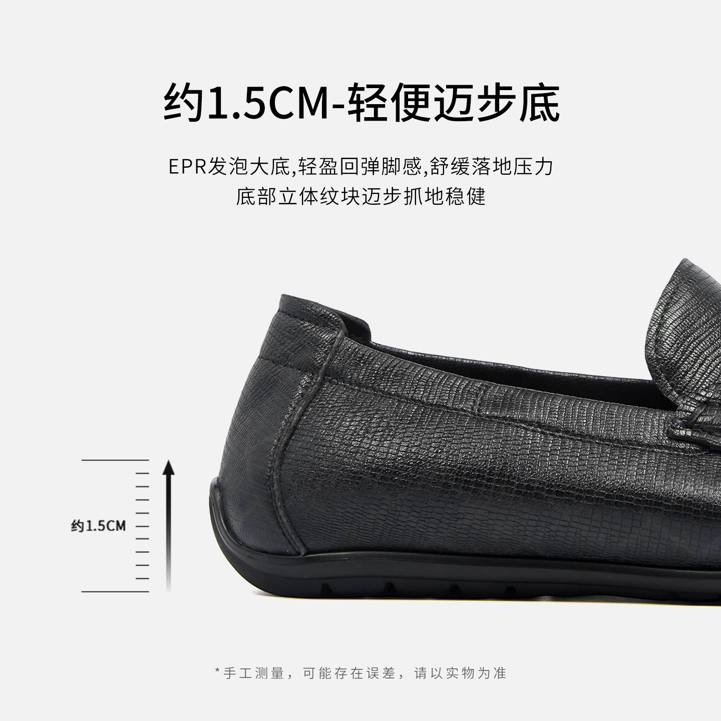 GOODLIVEABLE轻量化增高极简乐福鞋男士小牛皮厚底一脚蹬休闲皮鞋