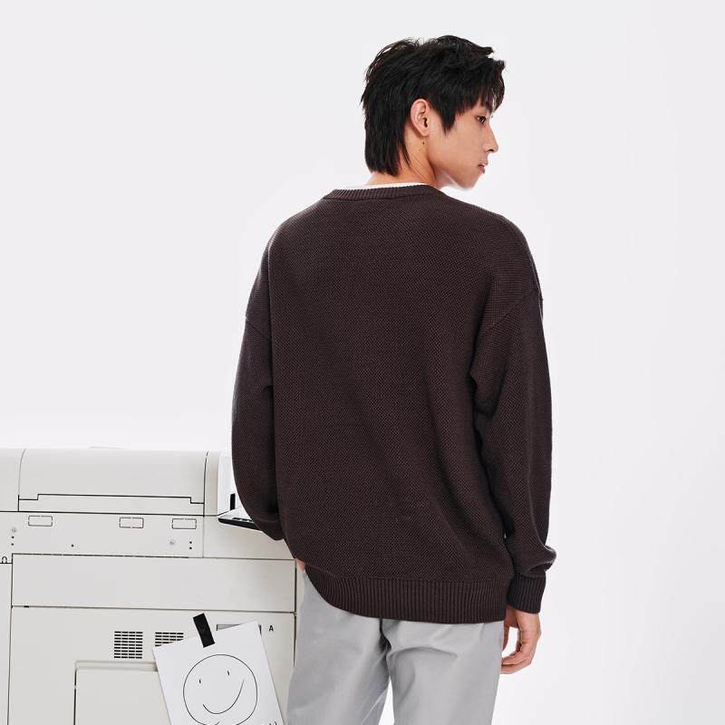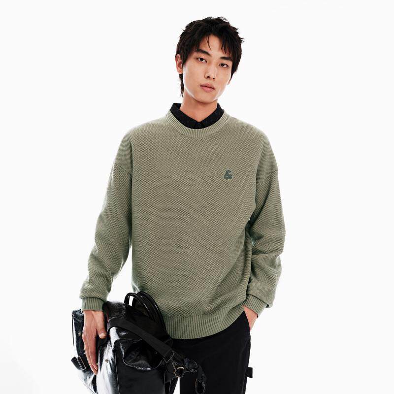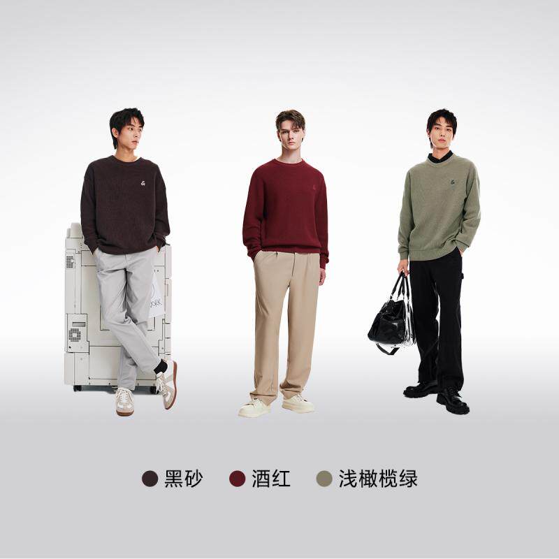 森马毛衫男冬季满版提花针织衫撞色毛衣宽松套头衫百搭提花潮-TK