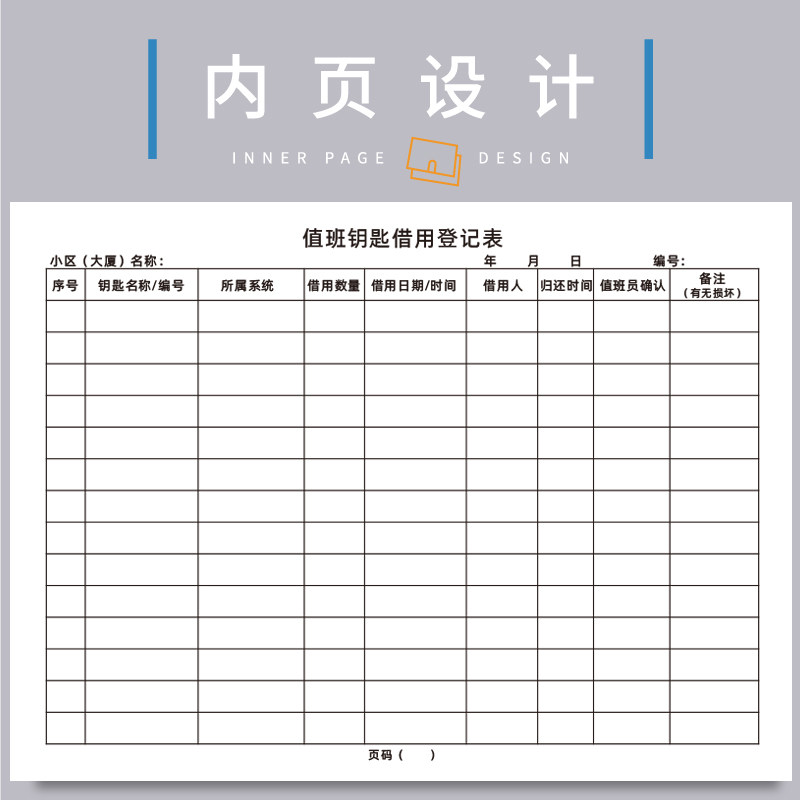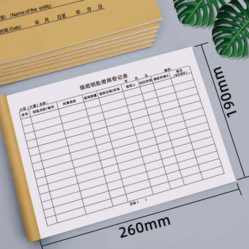 值班钥匙借用登记本小区中介物业管理值班钥匙借用登记表住宿管理公用钥匙借用登记簿物品借还登记本现货定制