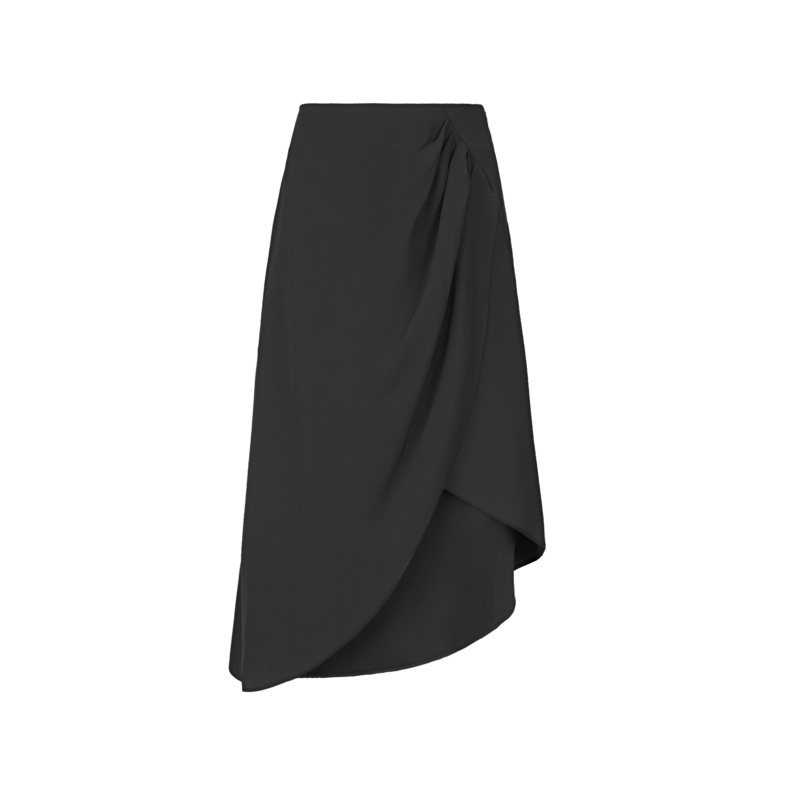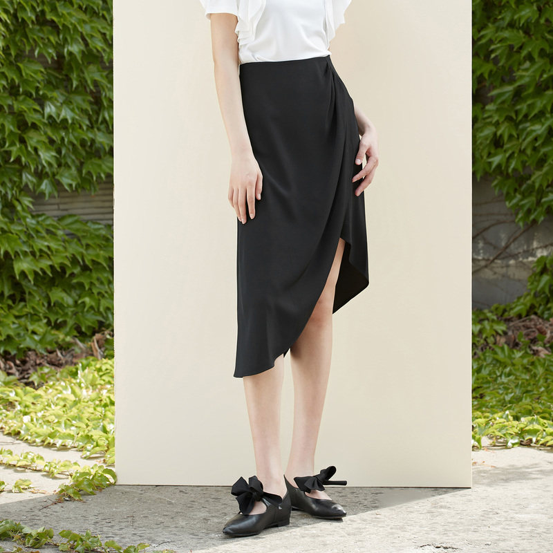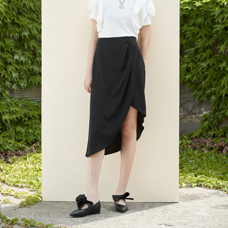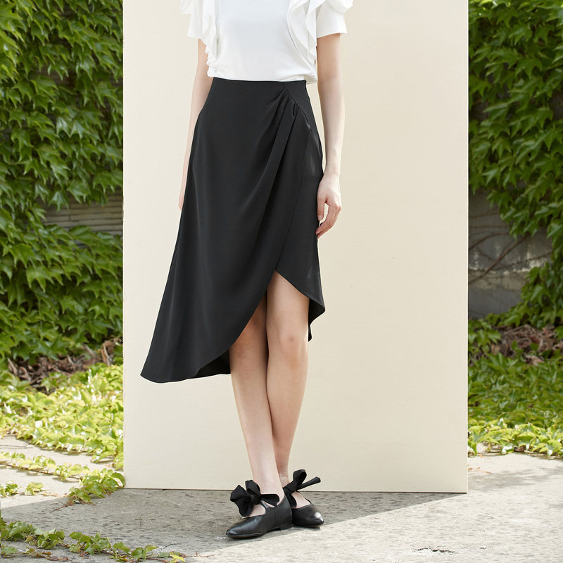 S·DEER圣迪奥女装复古高腰不规则A字黑色包臀裙S22281110