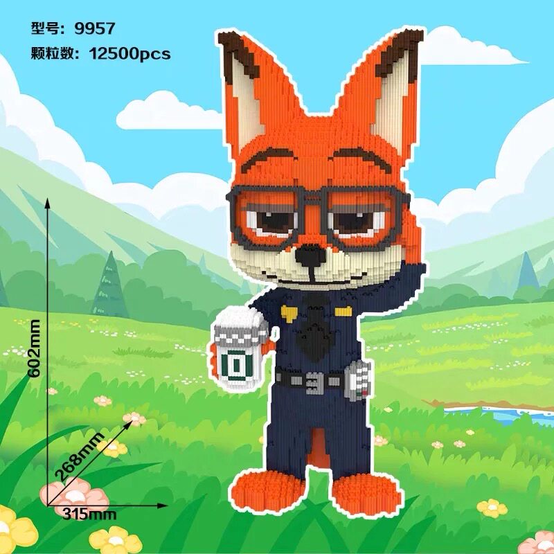 正版尼克狐狸国潮拼装积木儿童拼图益智玩具男女生日礼物超大巨大