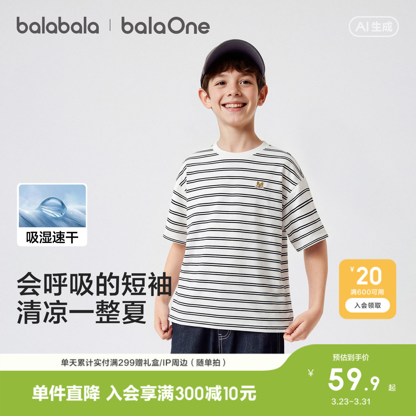 巴拉巴拉童装儿童短袖t恤男童女童2026新款夏装条纹速干亲子上衣