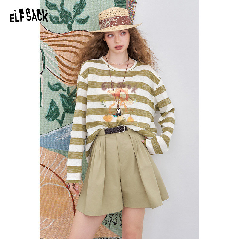 妖精的口袋【送腰带】复古卡其色高腰短裤女25夏新款宽松休闲裤子