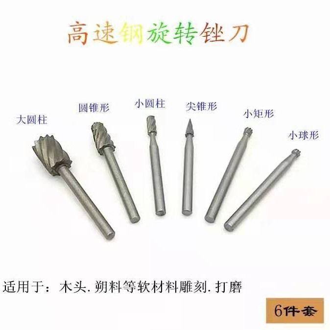雕刻工具电动雕刻刀高速钢旋转锉木工铣刀木雕打磨刀头套装抛光
