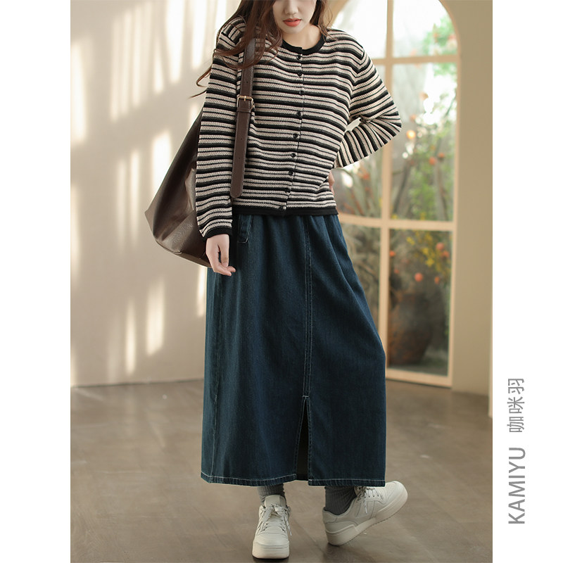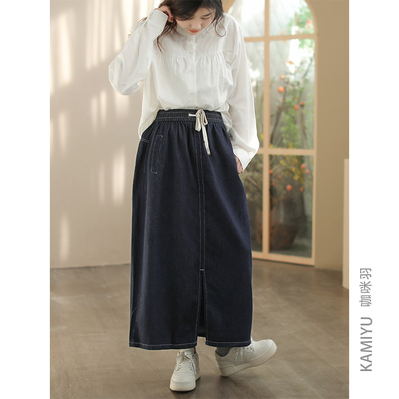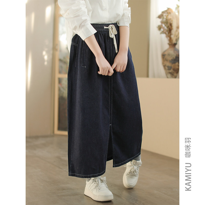 咖咪羽牛仔半身裙女休闲文艺宽松通勤女式百搭复古时尚女装A字裙