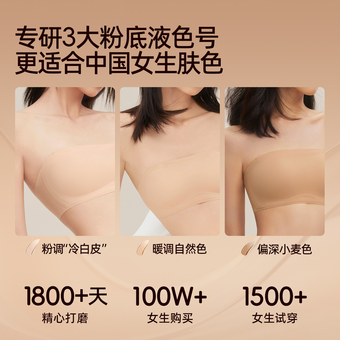 好奇蜜斯无肩带内衣女防滑抹胸无痕无钢圈粉底液文胸罩裹胸夏薄肤