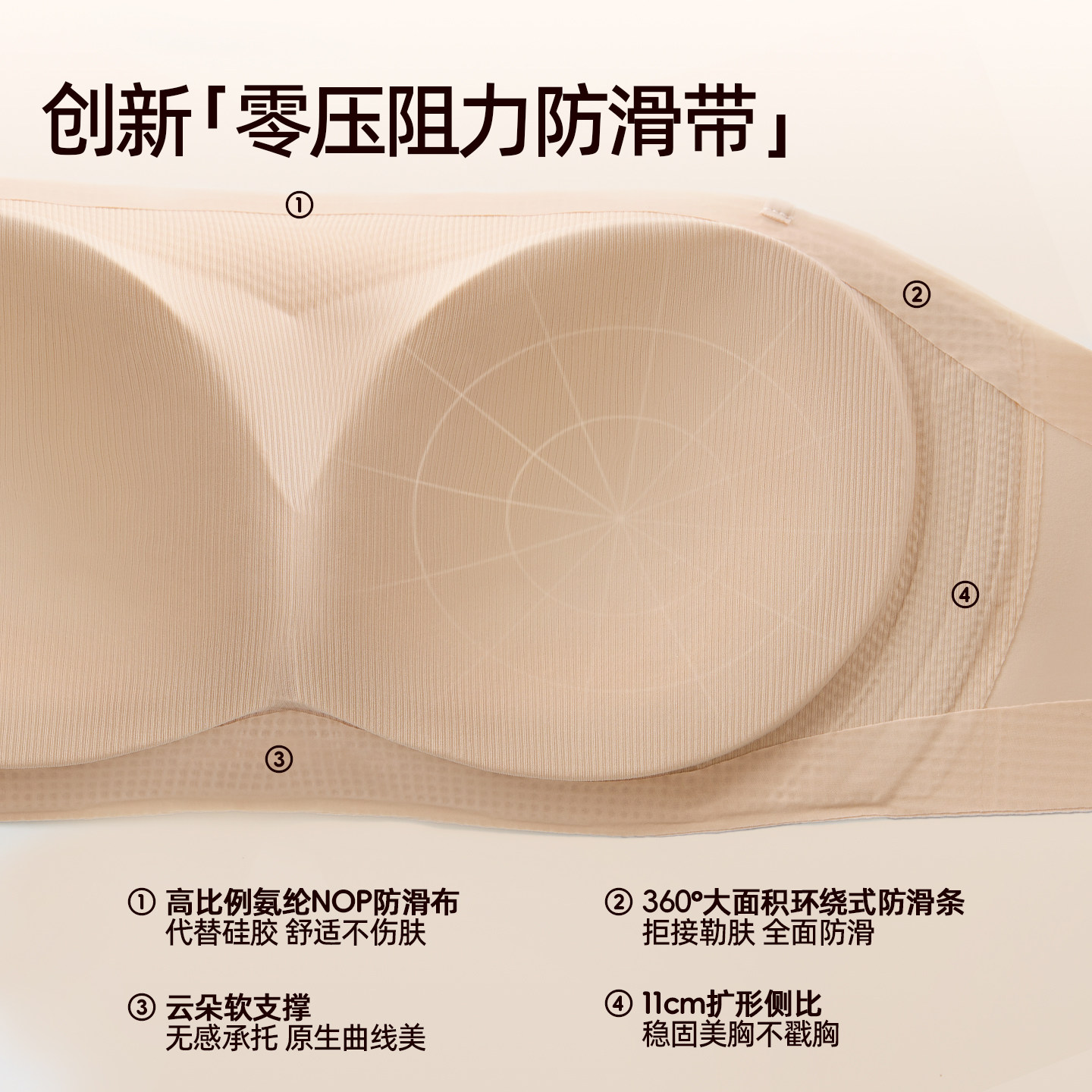 云朵软支撑防滑凉感透气不闷无肩带内衣抹胸