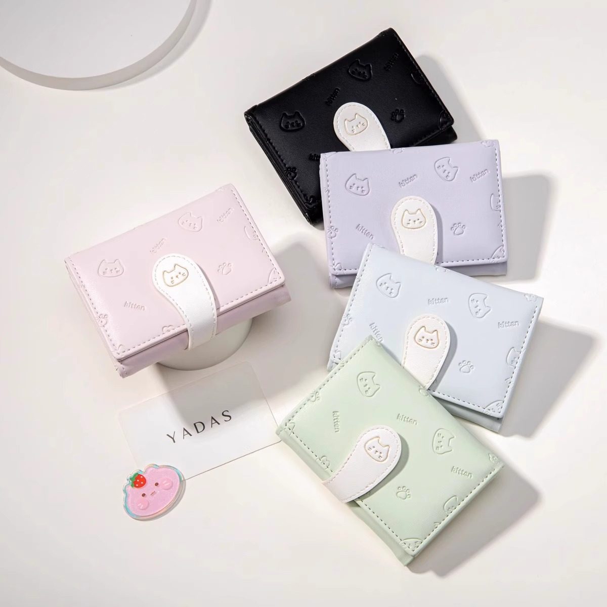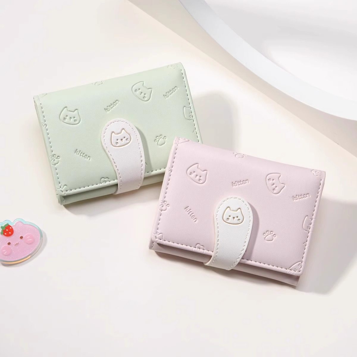 可爱猫咪折叠短款钱包韩版学生薄款小钱包卡通时尚小众零钱包钱夹