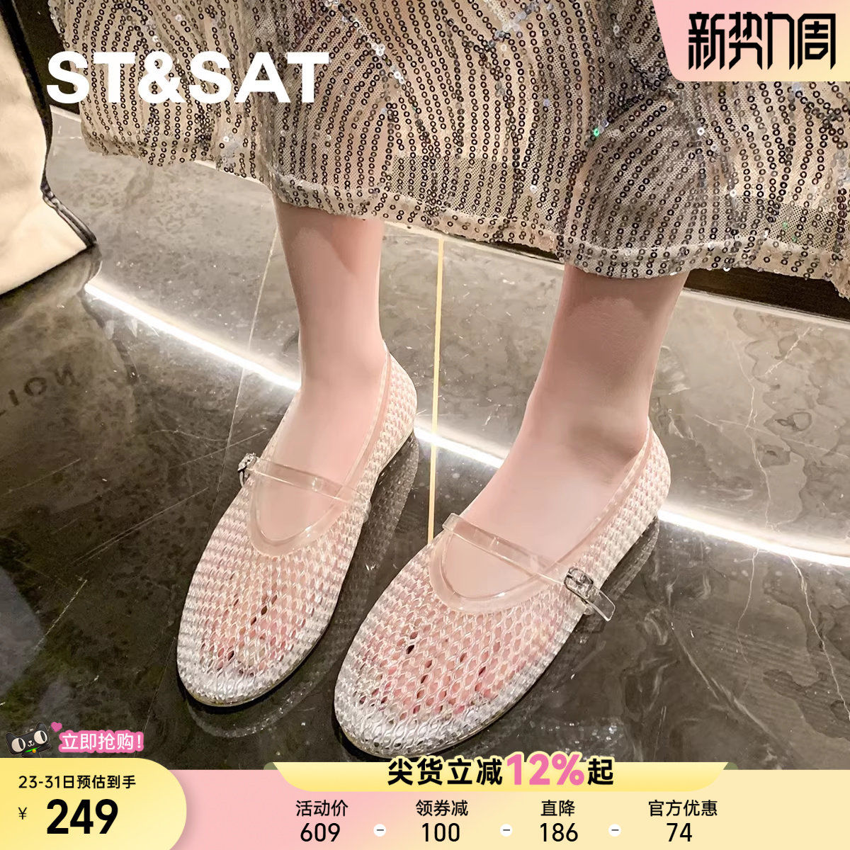 星期六玛丽珍鞋凉鞋女2025新款夏季透气仙女风软底凉鞋平底果冻鞋