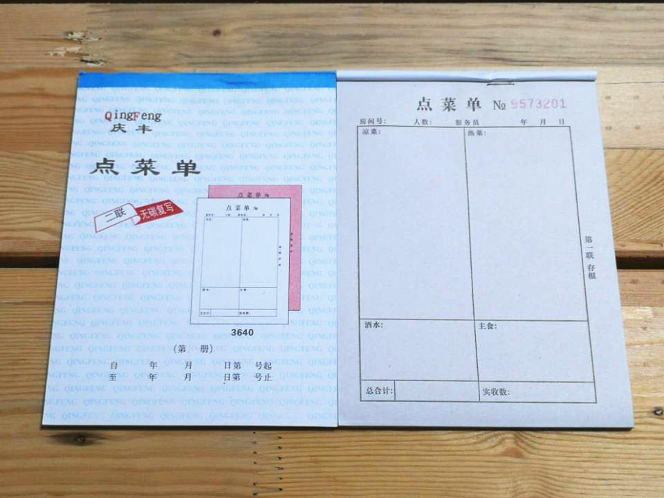 36开一联二联两联三联四联点菜单36饭店餐饮单高级无碳复写带垫板