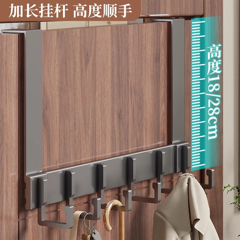 门后挂钩挂衣架免打孔卧室入户门门上加长收纳创意架承重浴室厨房