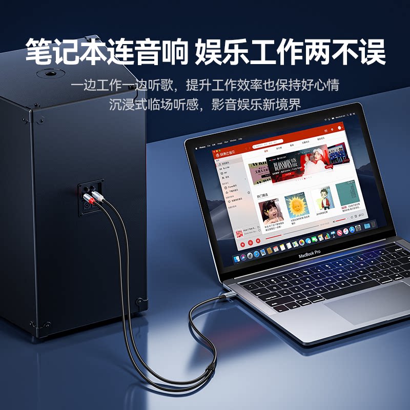 山泽音频线一分二typec转双莲花头aux手机电脑连接音响箱功放专用