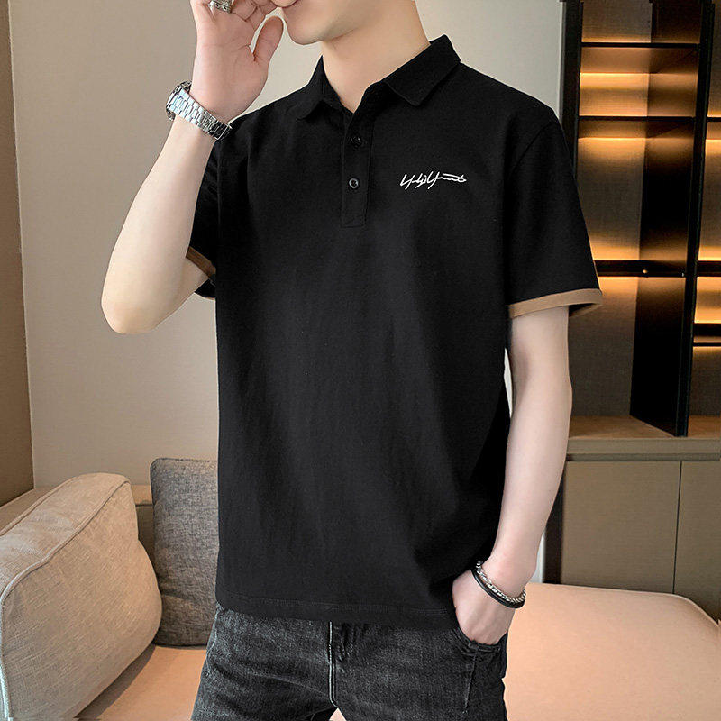 冰丝短袖t恤男士V翻领polo衫夏季薄款2026新款上衣宽松衣服体恤衫