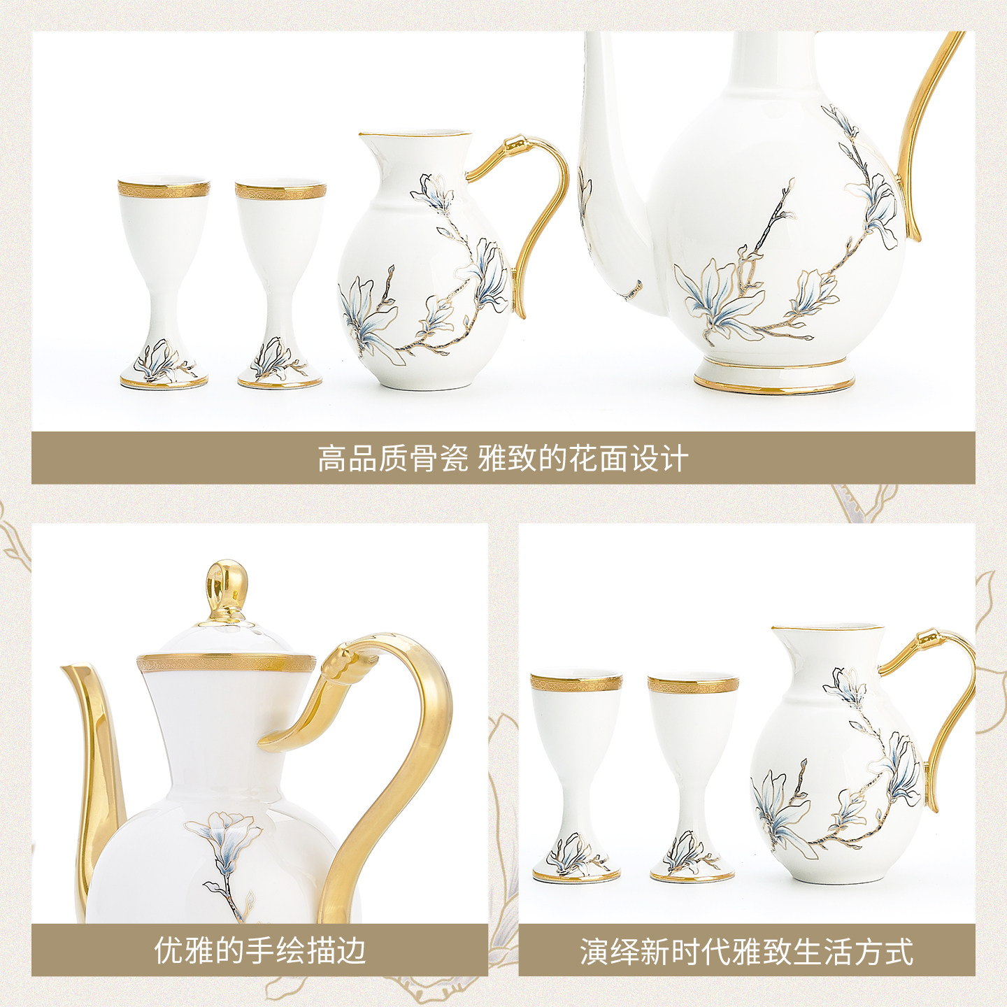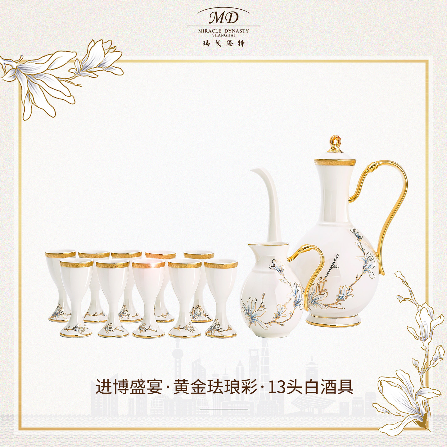 玛戈隆特骨瓷酒具套装10人份进博盛宴家庭装酒宴酒壶酒杯家用礼盒