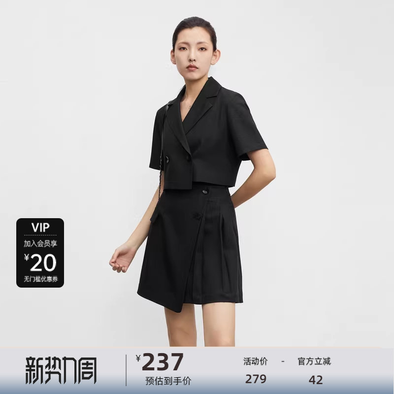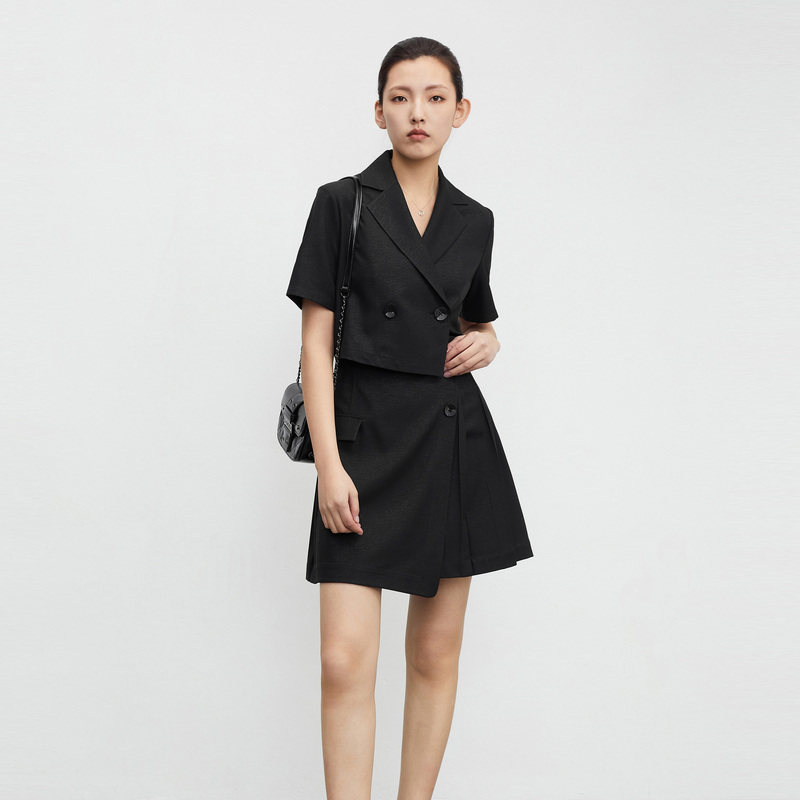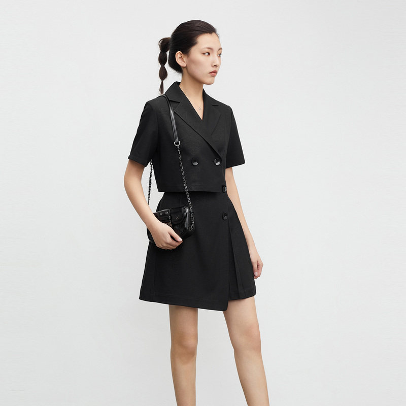 S·DEER圣迪奥女装学院风西装领压褶短款套装S23261401