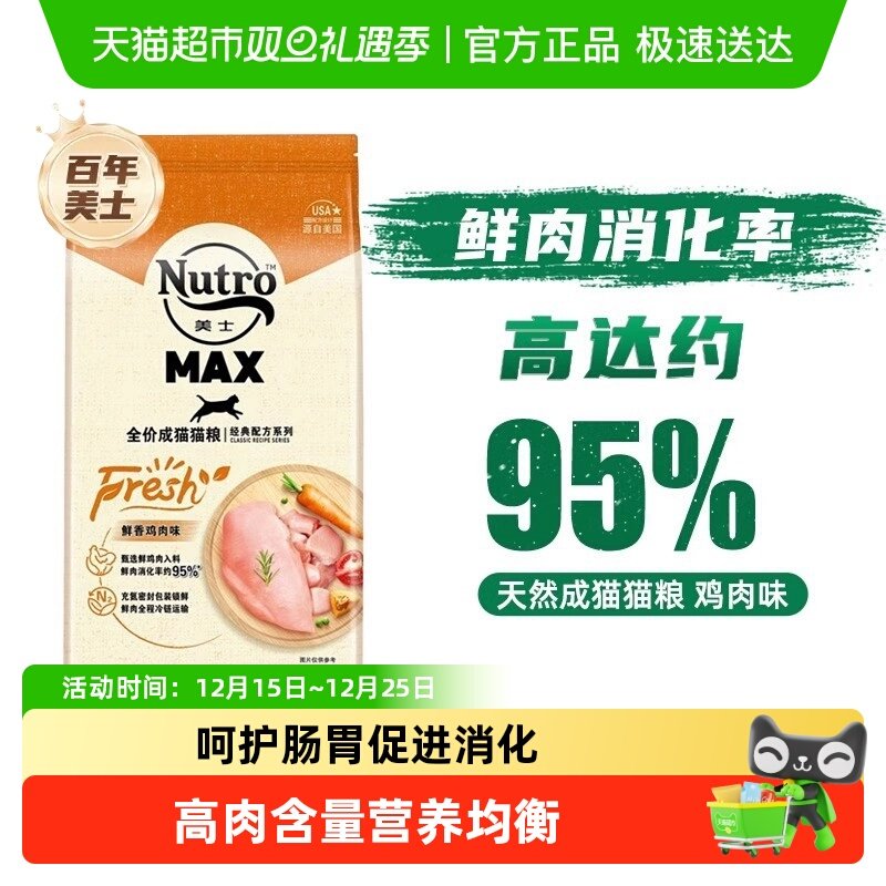 【下拉领淘金币优惠】美士Max全价成猫猫粮经典麦克斯增肥营养