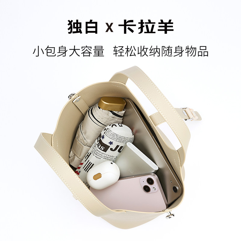 【水桶包】卡拉羊休闲百搭单肩包轻奢荔枝纹超纤皮女包大容量轻便随身斜挎包出差通勤旅游推荐防泼水好打理