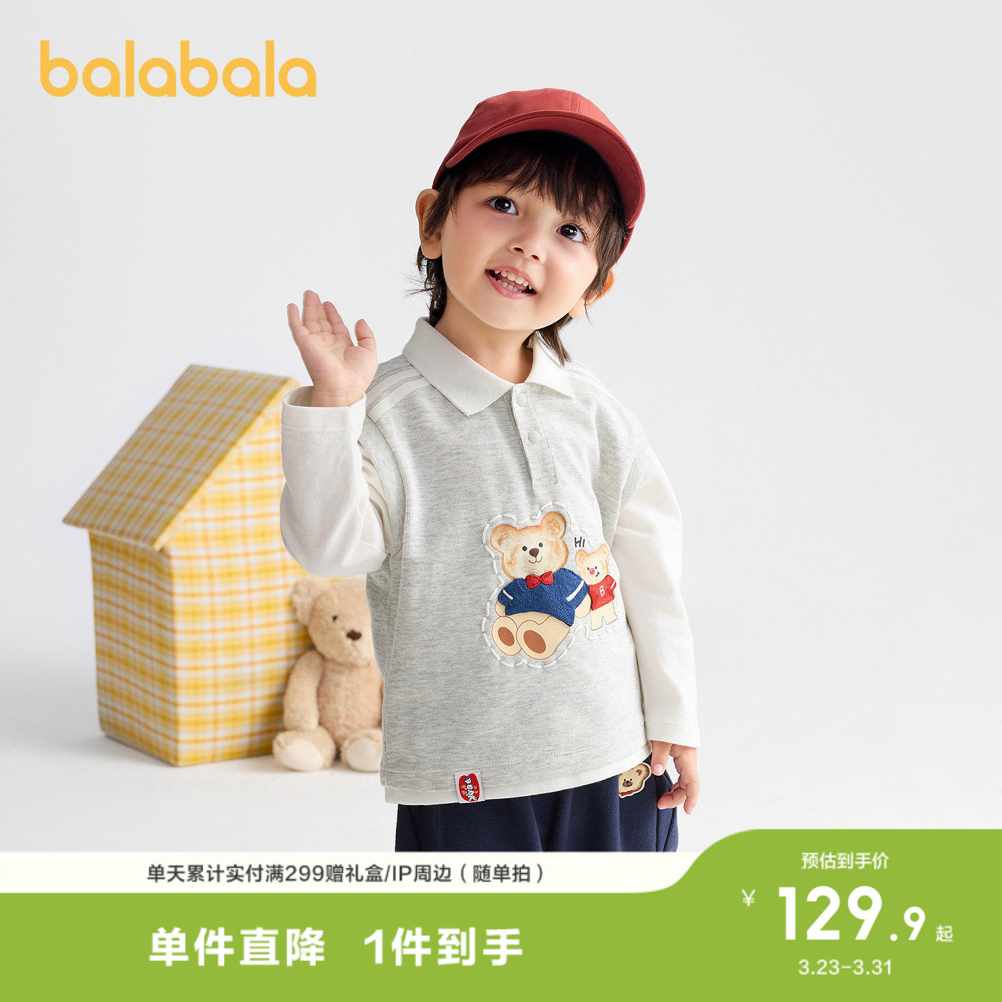 拼接假两件卫衣,萌趣小熊图案