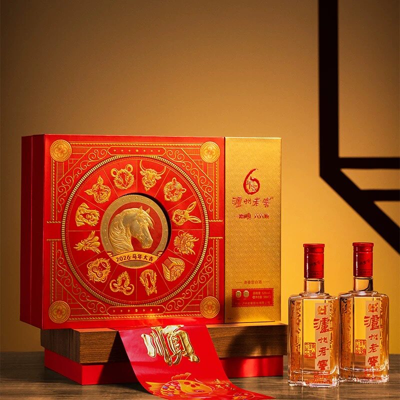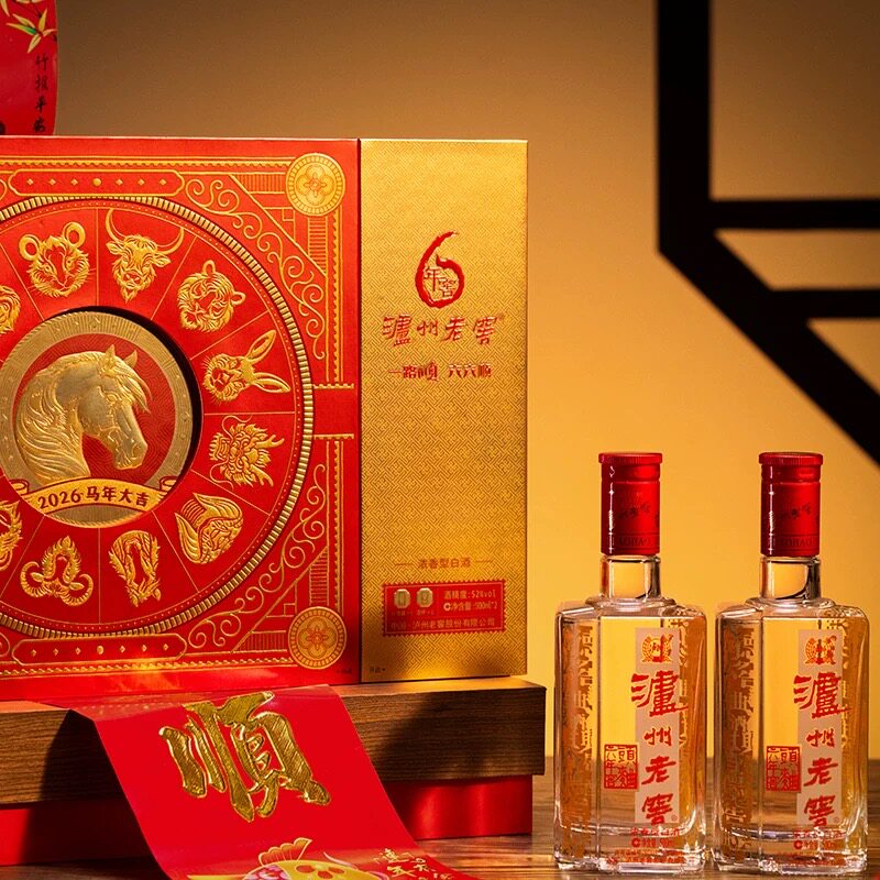 【年货礼盒】泸州老窖六年窖头曲白酒52度500ml*2瓶马年生肖礼盒