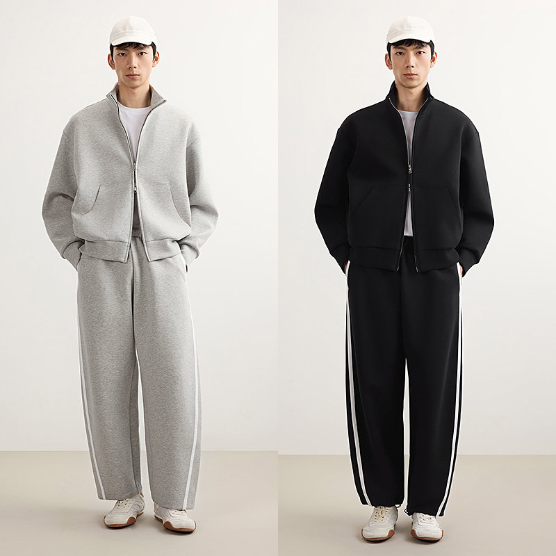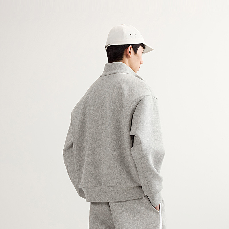 速写男装早春新款男士卫衣空气层翻领廓形开衫卫衣外套休闲松弛