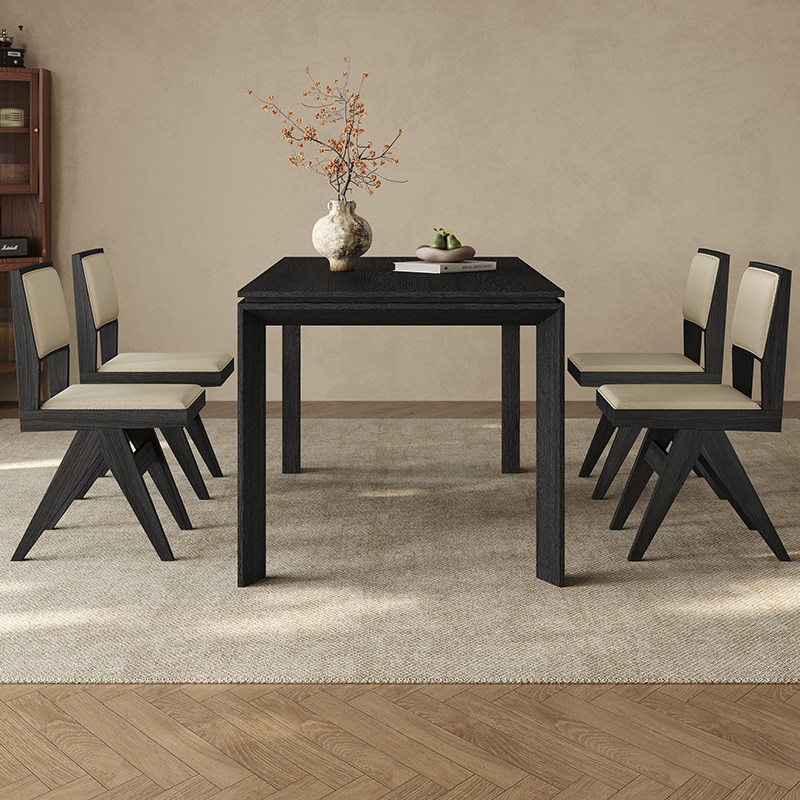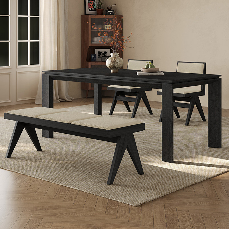 全实木餐桌家用小户型黑胡桃木皮长方形2026新款大板复古实木餐桌