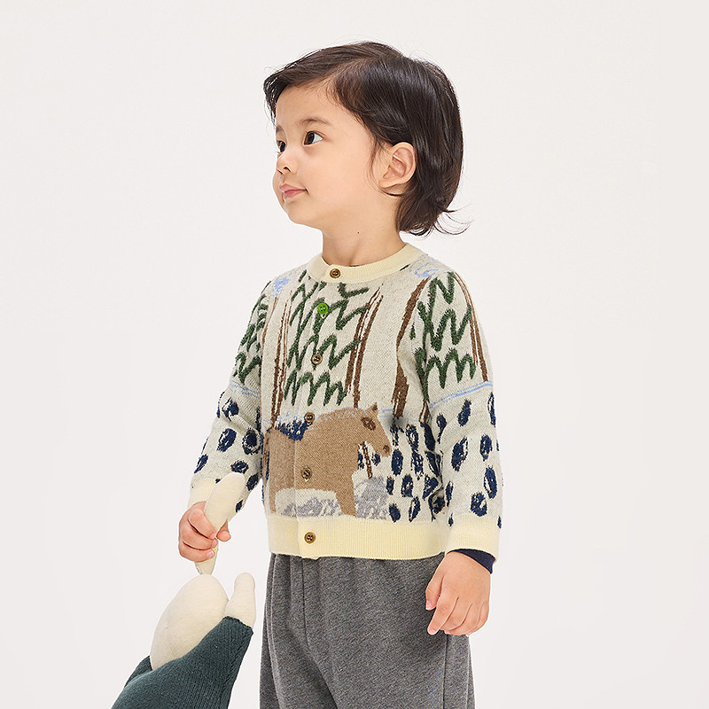 新款江南布衣婴童毛衫外套开衫羊毛混纺A类生肖马26春jnbybyjnby