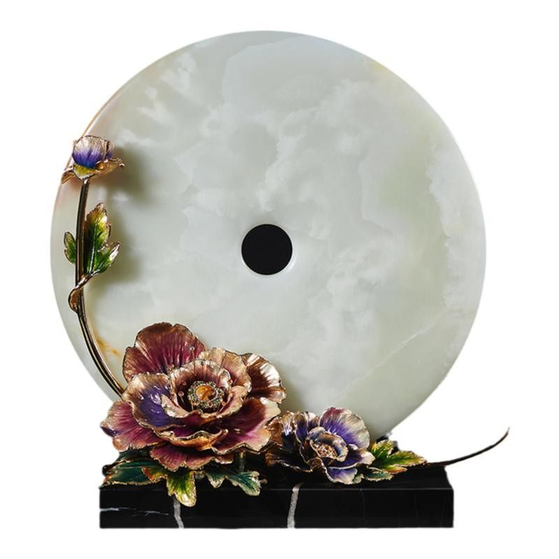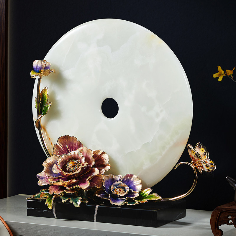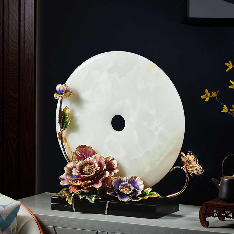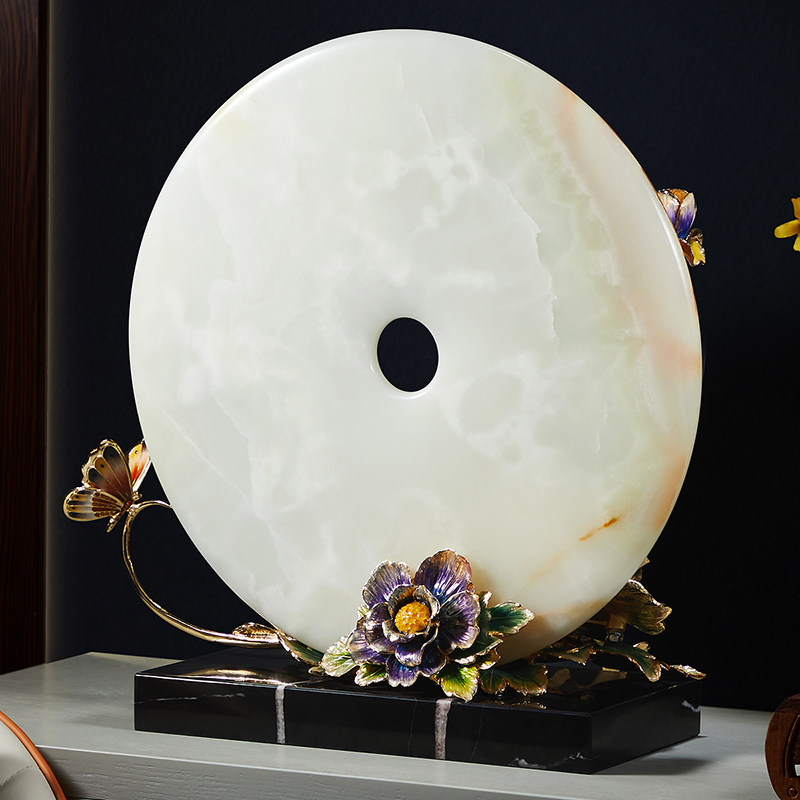 高端平安扣玉石摆件珐琅彩天然玉石饰品乔迁新居客厅办公室礼品