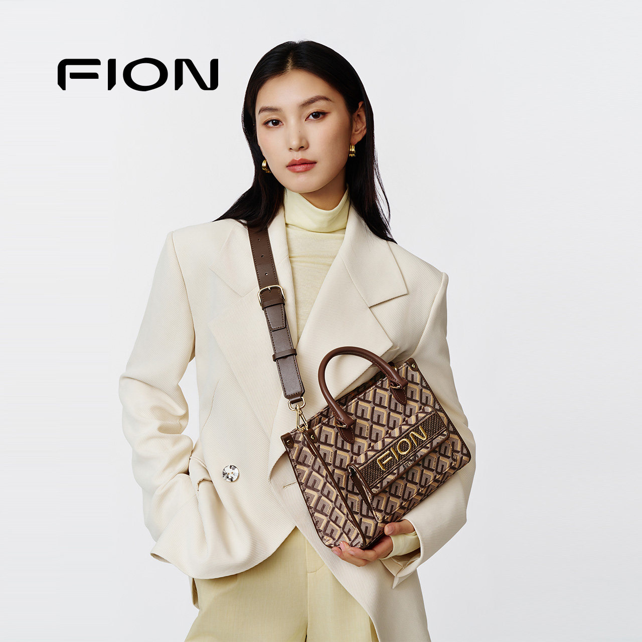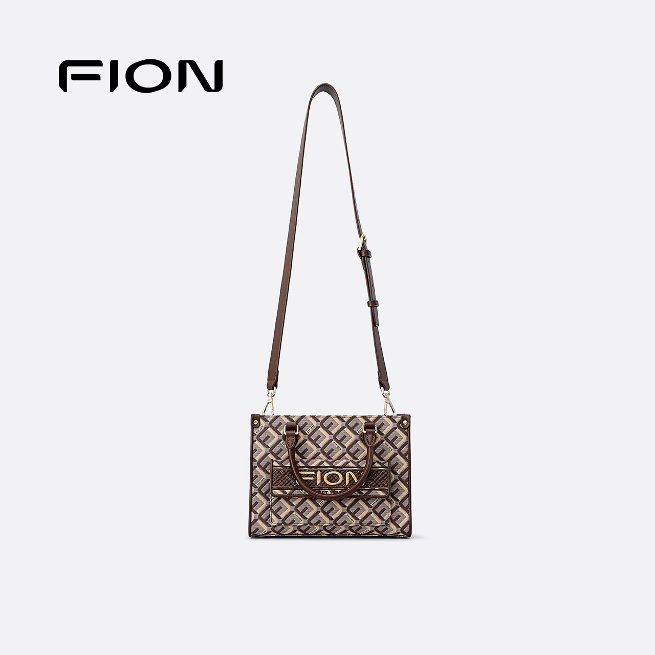 Fion/菲安妮菱标巧锦托特包新款大容量女士单肩通勤斜挎包包