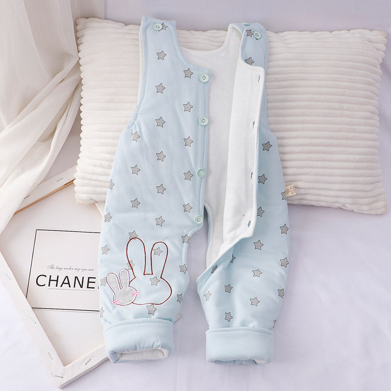 童泰婴儿背带裤冬装男宝宝棉裤夹棉女小月龄开裆加棉冬季加绒连体