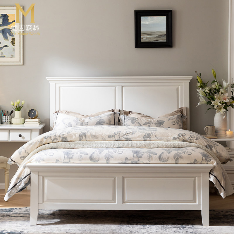 白色美式床纯实木床大床1.8米双人床卧室家具1.5m简约美式