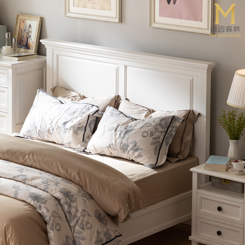 白色美式田园实木床1.8m简约单双人床次卧白色公主床奶油风儿童床