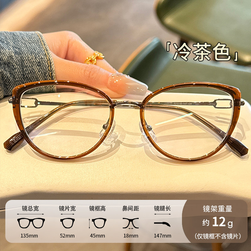 目戏冷茶色眼镜近视女专业可配度数可选防蓝光镜片眼镜框镜架5018
