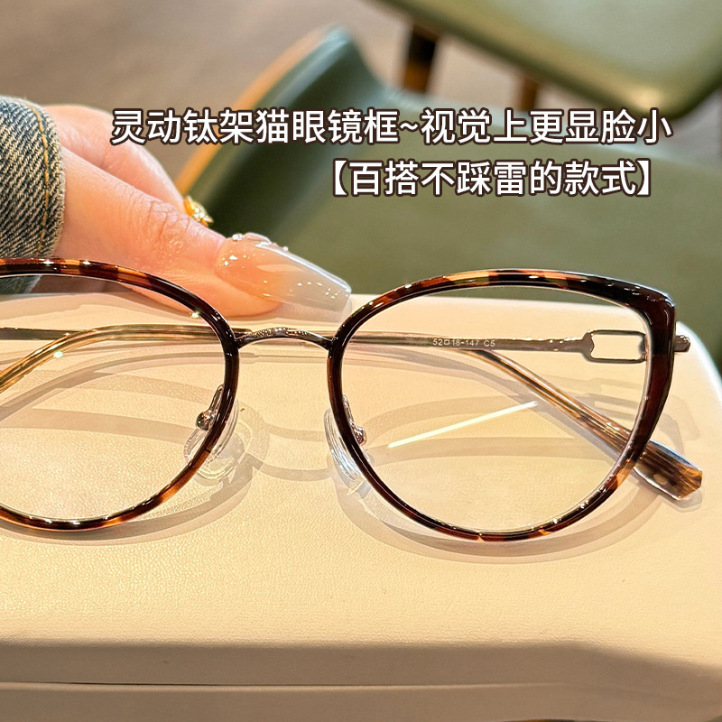 超轻钛架复古玳瑁色猫眼框眼镜近视女可配度数方圆脸显脸小眼睛架