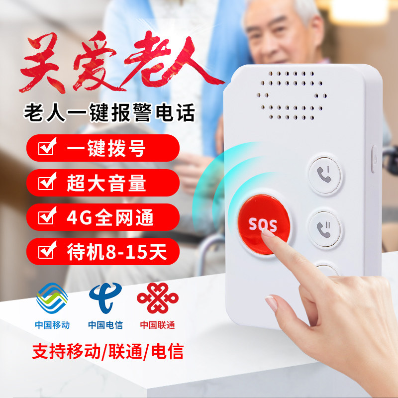 老人电话一键拨打大声音大按键一键紧急呼叫器家用社区独居老年病人求救器报警器全网通4G老年人一键拨号手机