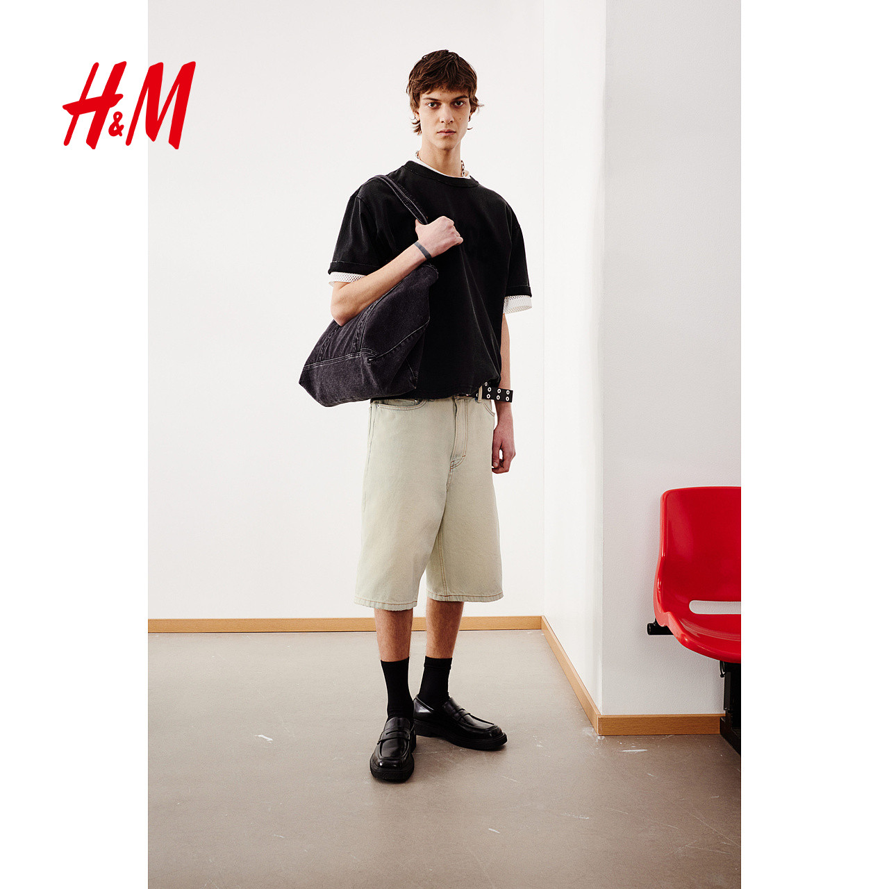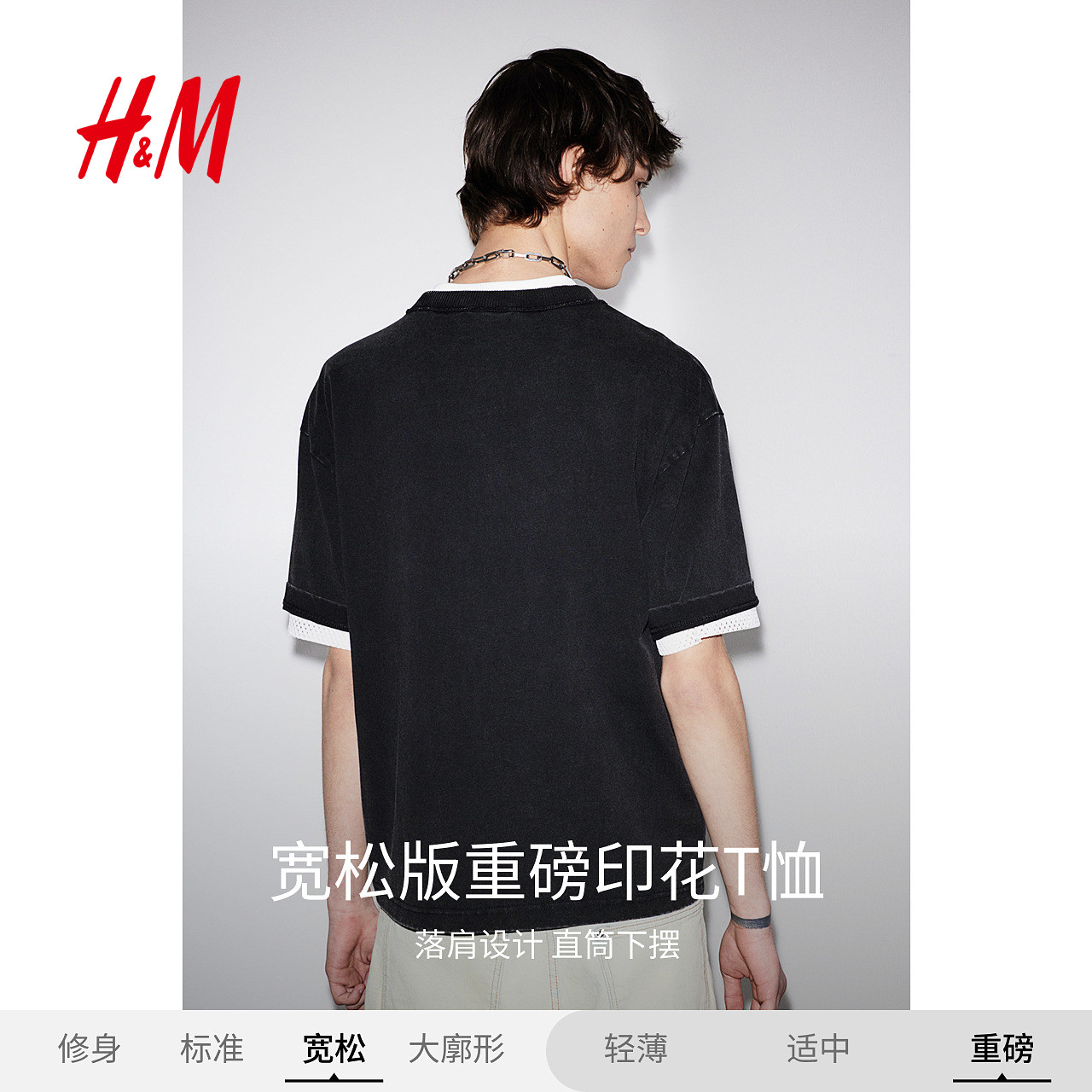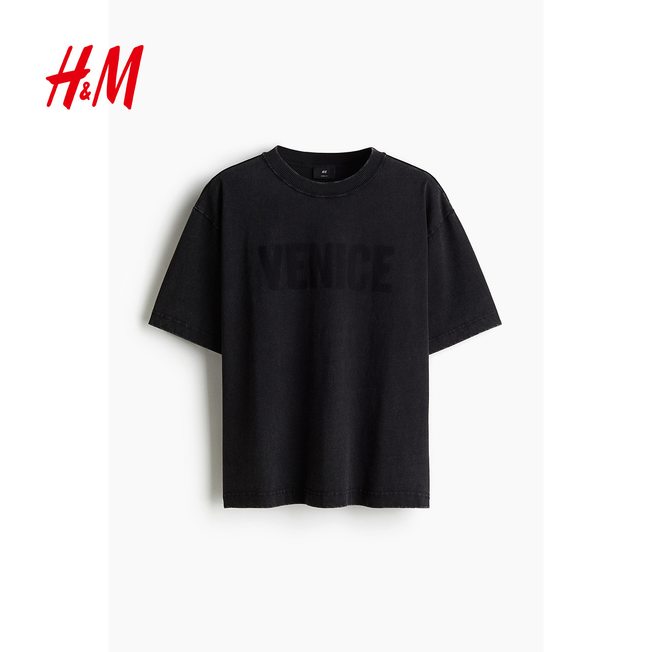 HM男装女装T恤春季重磅潮流宽松版印花短袖户外出游上衣1262292
