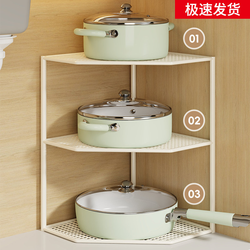 厨房拐角置物架下水槽锅具收纳架厨房柜子橱柜多层放锅分层锅架