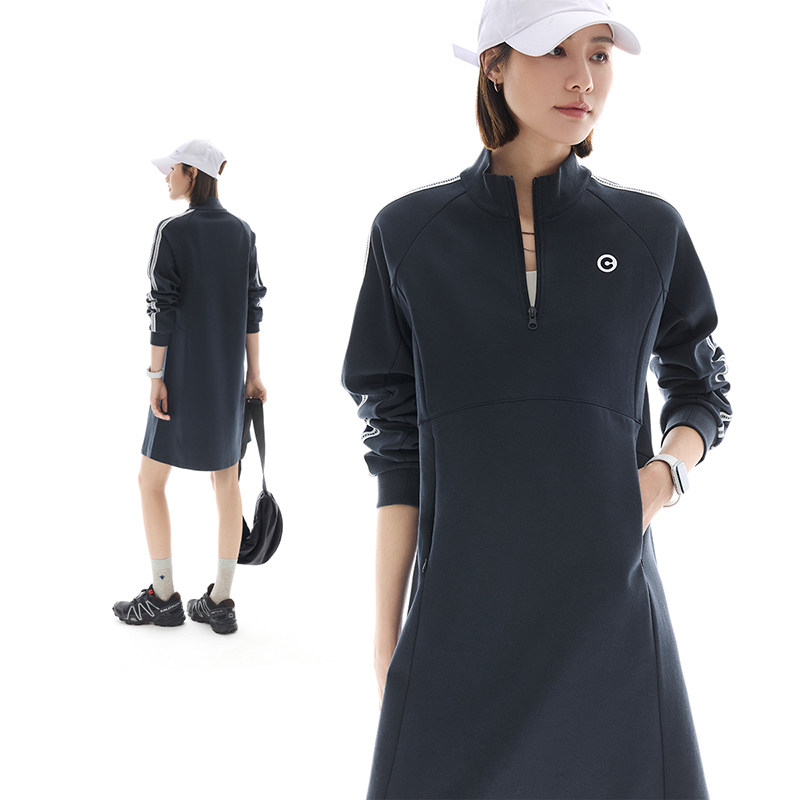 CLOUDSPACE【青鸟连衣裙】半拉链弧线分割设计感裙子2025春秋下装