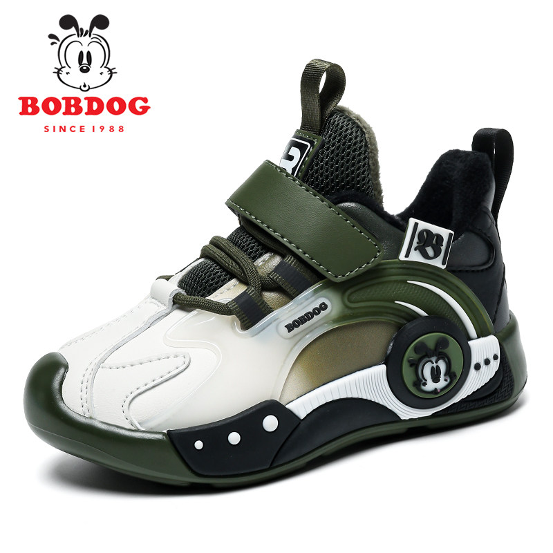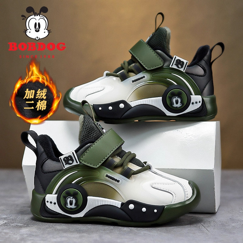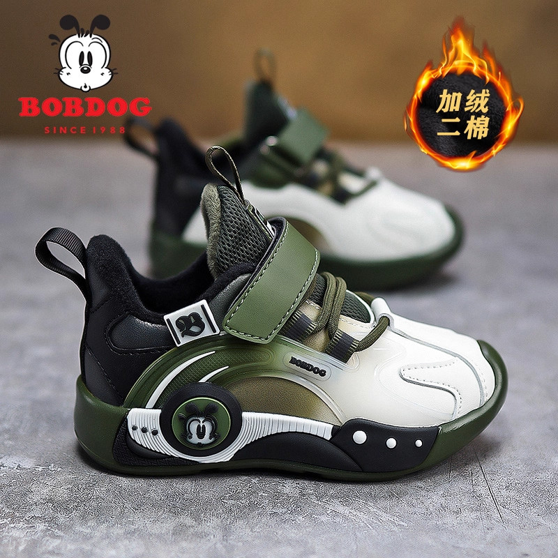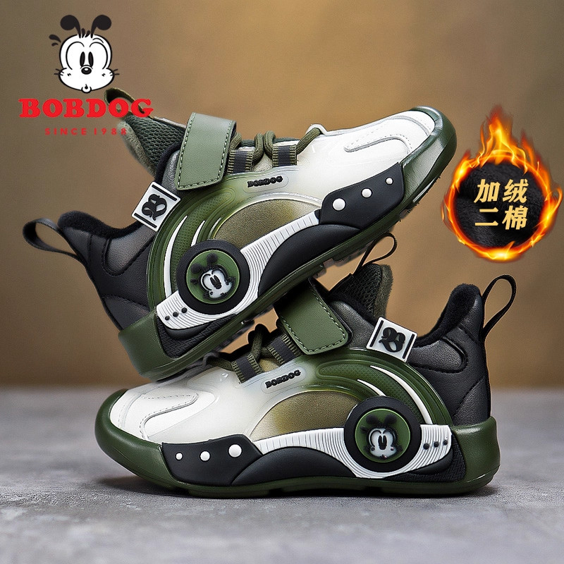 巴布豆男童棉鞋2025秋冬新款皮面加绒二棉鞋子保暖男孩儿童运动鞋